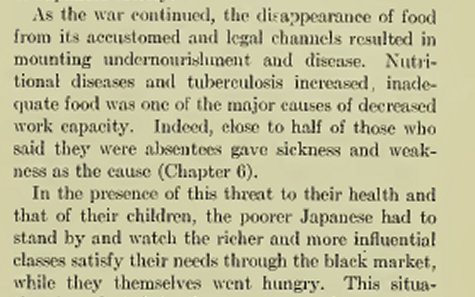 There was a divide between the poor Japanese and the ones that had enough money to buy food off the black markets.