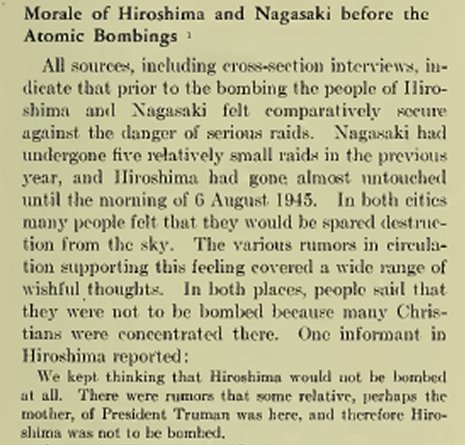 The morale of Nagasaki was higher than that of Hiroshima, though.