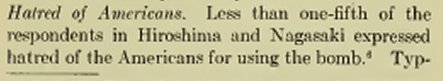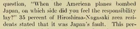 35% felt the bombing of Hiroshima and Nagasaki thought it actually was Japan's fault.