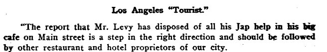 A newspaper clipping about someone getting rid of Japanese help in his cafe.
