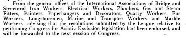 The labor groups represented are Cement Workers Union #1,d Upholsterers Union #28, San Francisco Typographical Union, Clerks Union #432, and the San Francisco Labor Council.