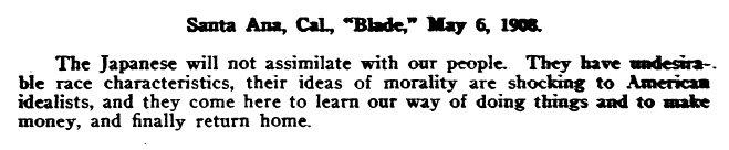 Another of the many charges that the Japanese are immoral and cannot assimilate with Americans.
