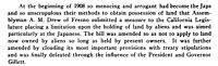 “...so menacing and arrogant had become the Japs and so unscrupulous their methods to obtain possession of land...” The whole thing about Japanese owning land really gnawed at the craw of the anti-Japanese section of California. A good bit of all this was economic jealousy, as the Japanese were able to get land that no one else could grow things on and then turn around and grow profitable crops on the land.