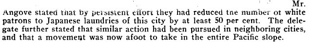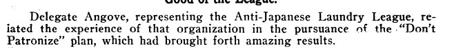 Stores that did people's laundry were very big things at that time, and the league was trying to stop people from patronizing laundry cleaning services run by Japanese.