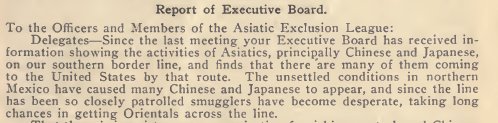 They complain about Chinese and Japanese coming into the United States from Mexico.