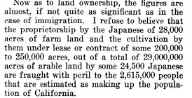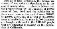 He also talks about the actual land usage of the Japanese. Using the upper numbers, the Japanese have use of 278,000 acres of land (again, at the absolute maximum. ) This is out of 29,000,000 acres of usable land. This means they have, at max, use of less than 1% of the land.
