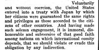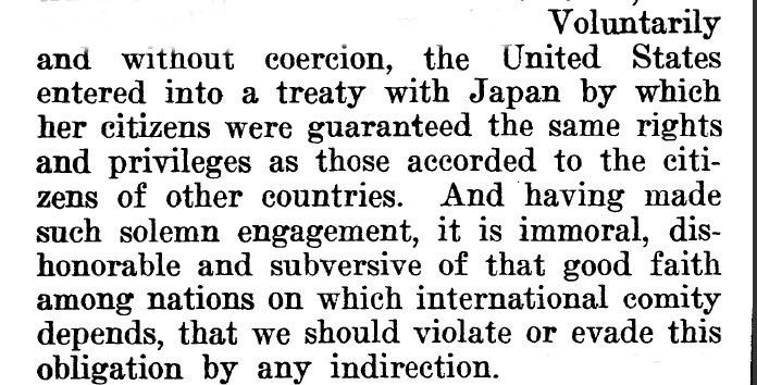 He then talks about the fact that the U.S. had a treaty with Japan and basically chose to ignore it.
