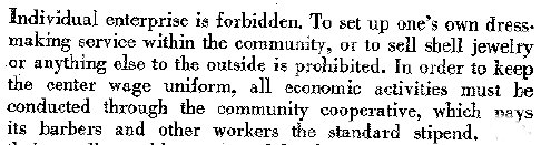 Something else I have not seen elsewhere is that individual enterprise was forbidden in the camps.