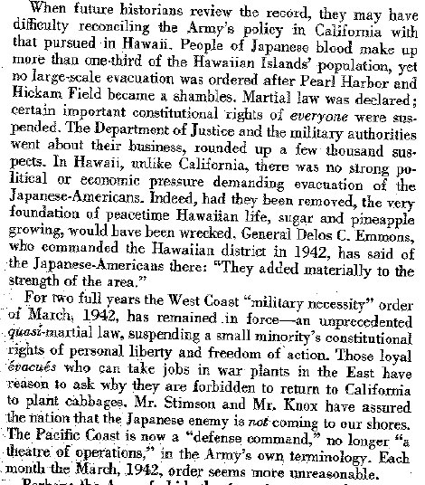 He then discusses Hawaii, and the quasi-martial law used on the West Coast.