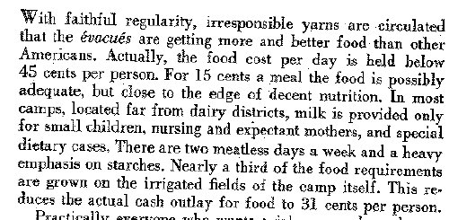One of the complaints about the camps was that they were “coddling” the Japanese.