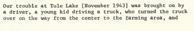 Some of the Tule Lake negative reporting was due to the time when the Army had been called in and they refused to allow any reporters in, which made everything look worse than it actually was.