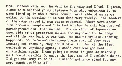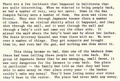 He talks about some problems that there were with Japanese who returned from the camps and tried to go back to their life of farming.
