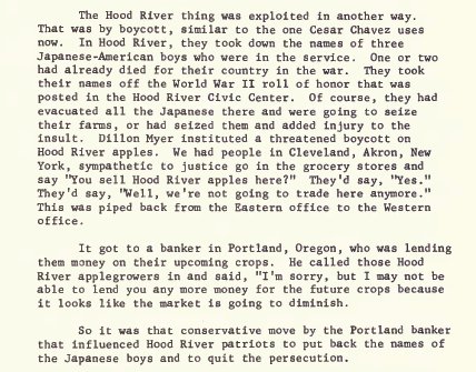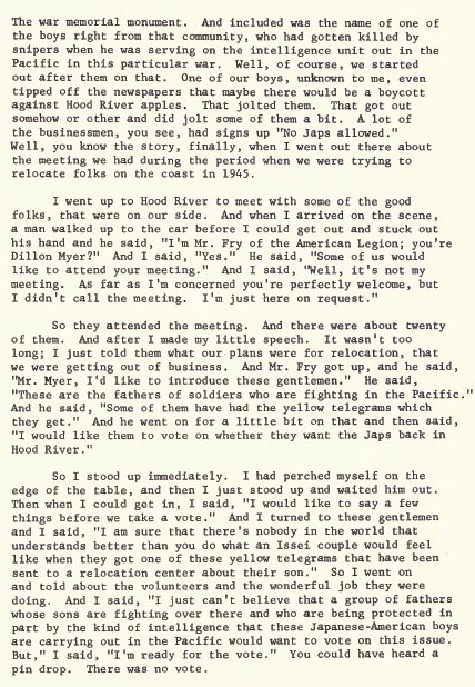 He talks about Earl Warren, who was governor of California by the, and says he “made very drastic statements against WRA and everybody in it.”