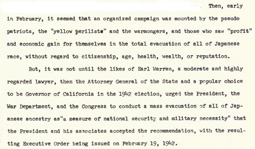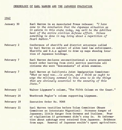 They then put a chronology of events related to Earl Warren and the Japanese evacuation: