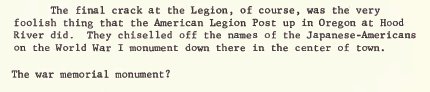 He talks about the Poston strike. He also talks about the 1950 Internal Security Act which allowed to rounding up people just like was done to the Japanese Americans.