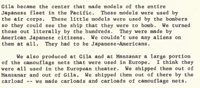 The Japanese evacuees also helped the U.S. military by making models of the Japanese fleet.