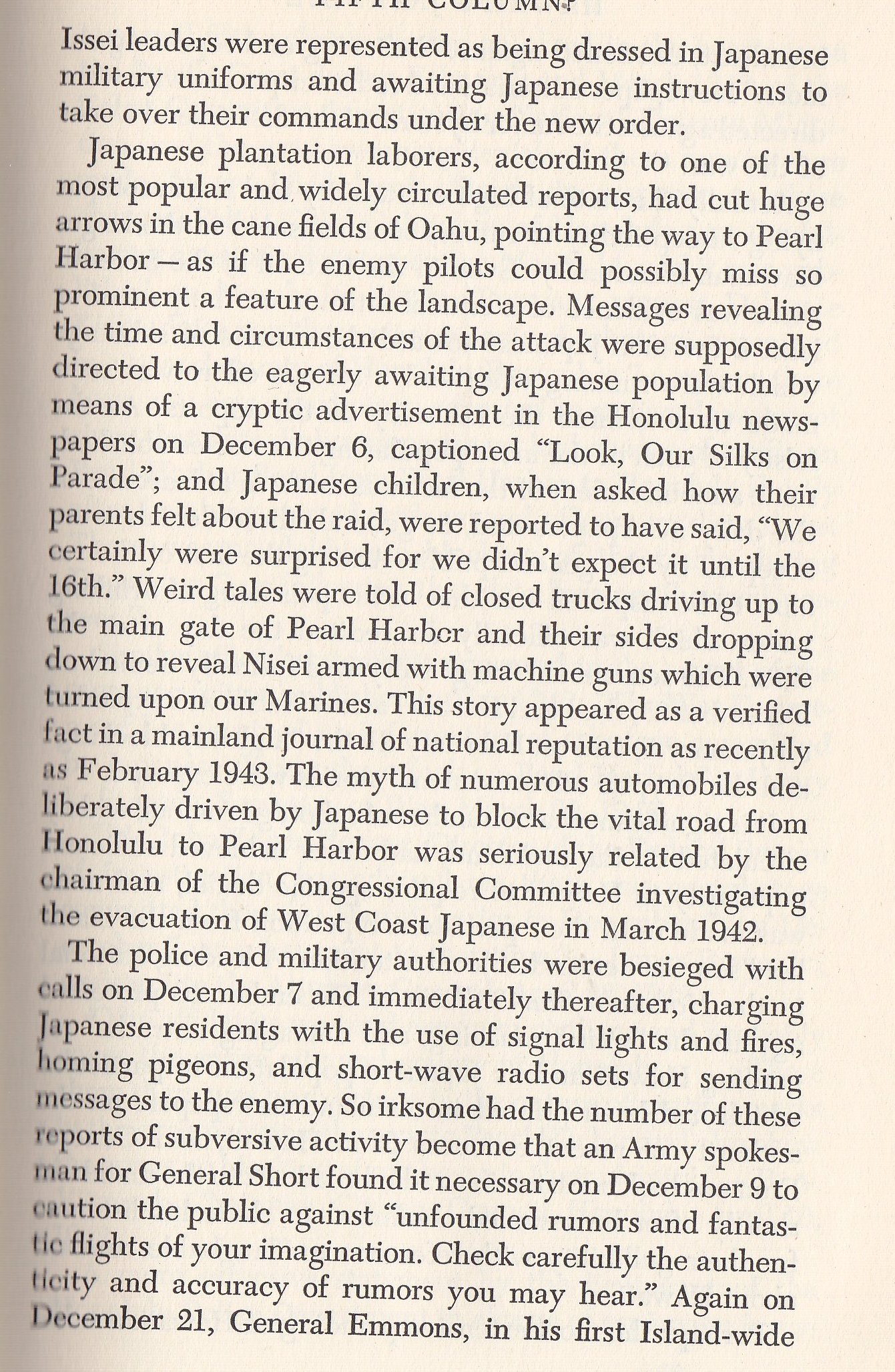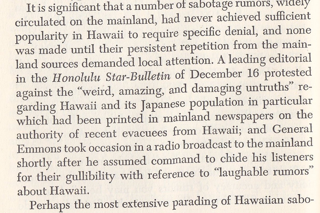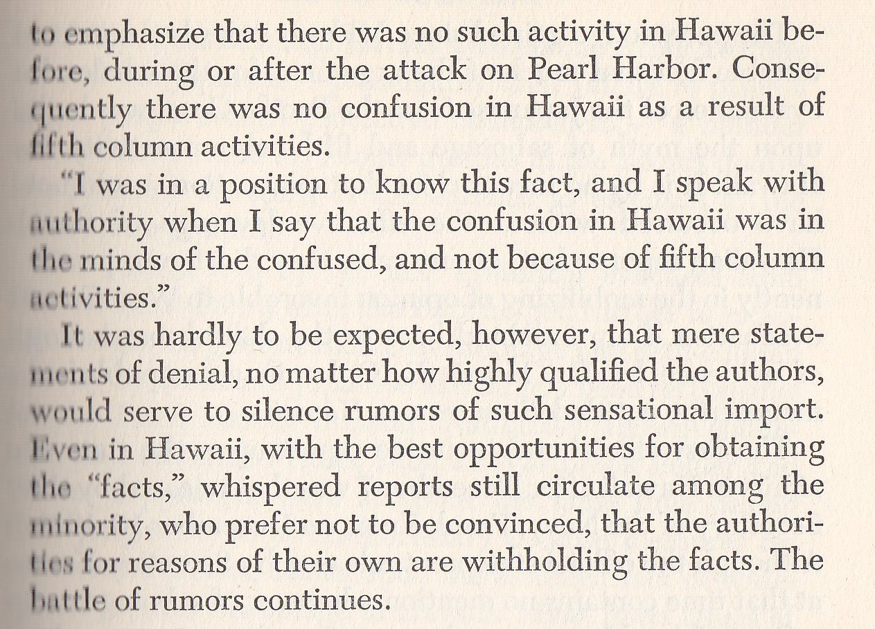 After the attack, there were various rumors of Hawaiian Japanese treachery. Each rumor, though, was fairly quickly denied and denounced.