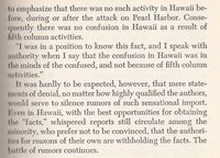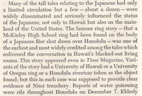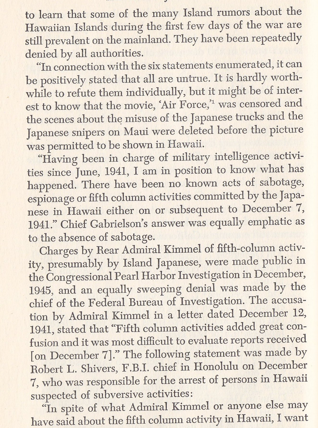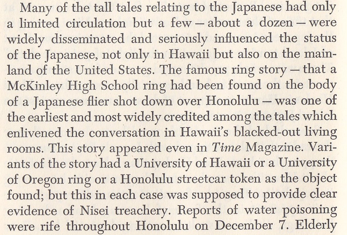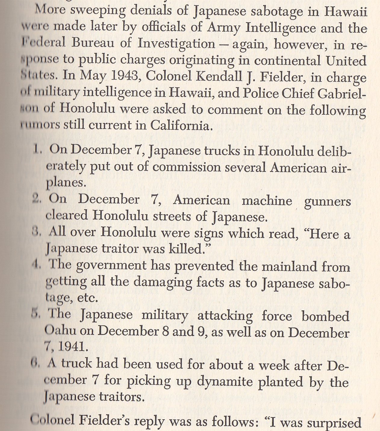 After the attack, there were various rumors of Hawaiian Japanese treachery. Each rumor, though, was fairly quickly denied and denounced.