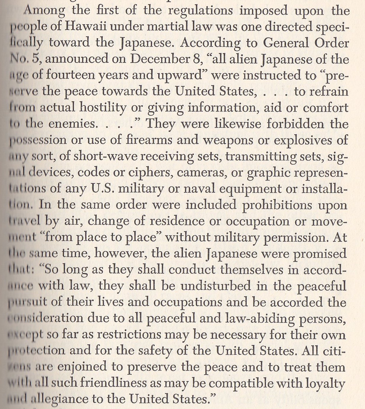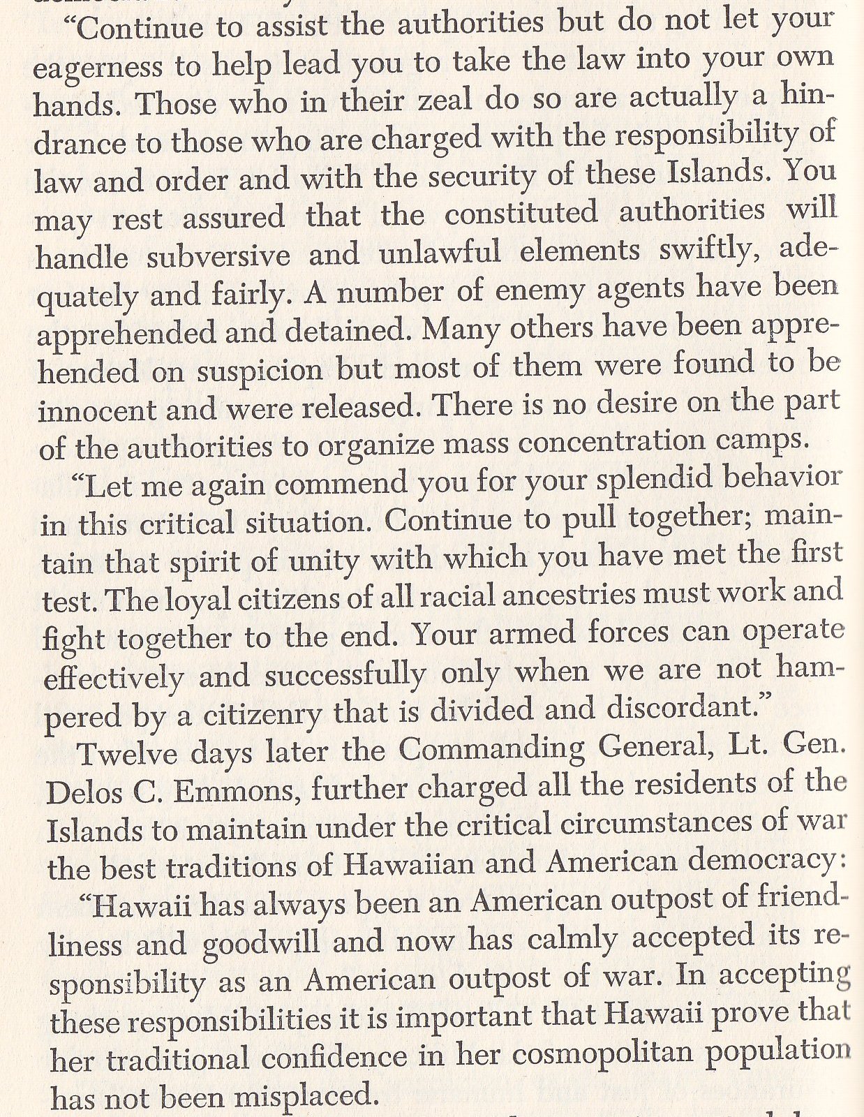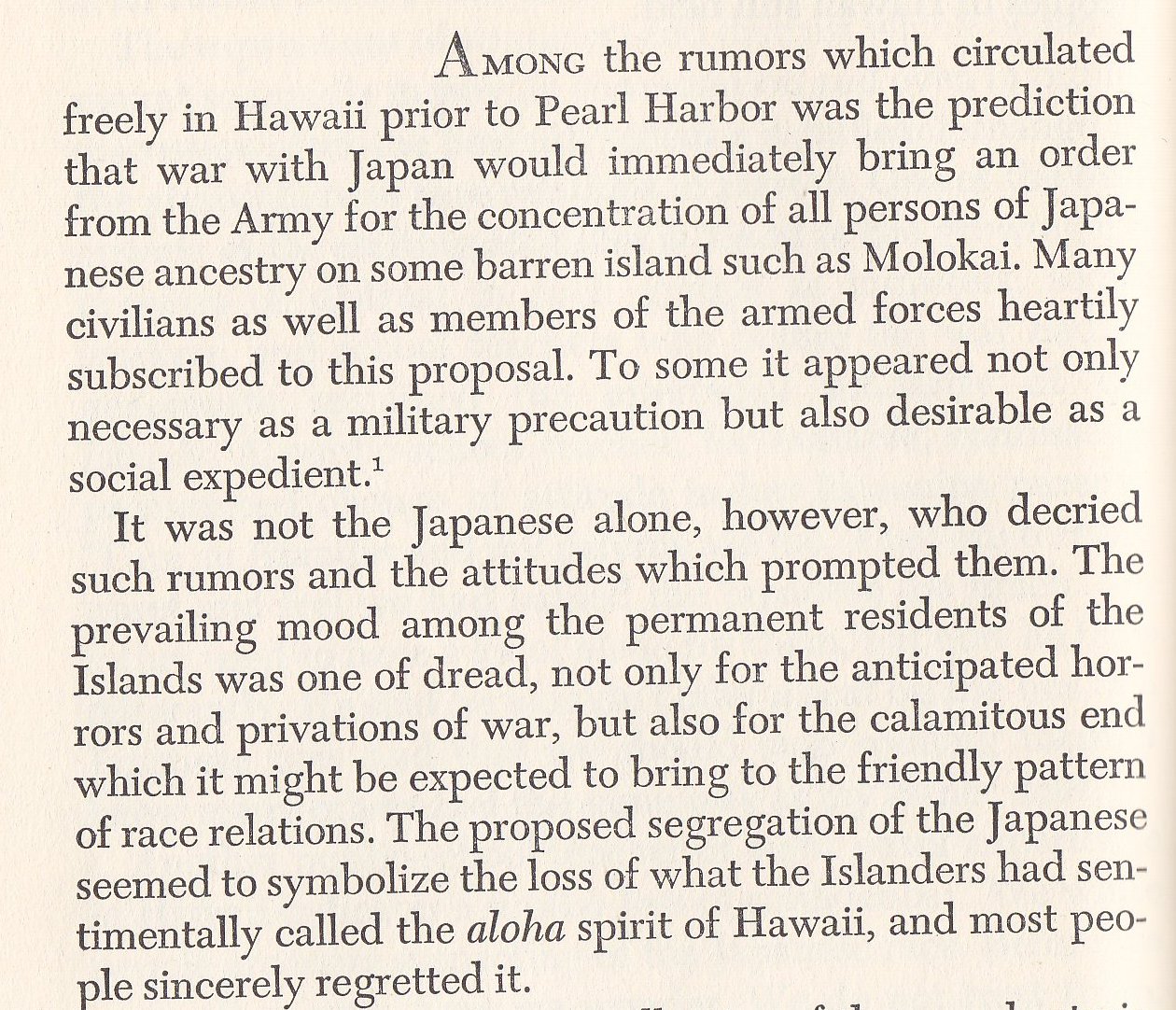 Keep in mind that the situation in Hawaii in relation to persons of Japanese ancestry was handled very, very differently from the situation on the West Coast of the U.S., and books like this help us to understand why.