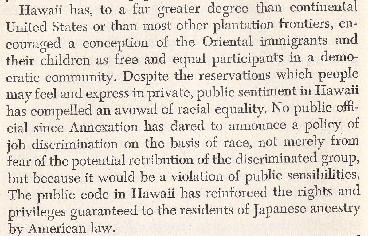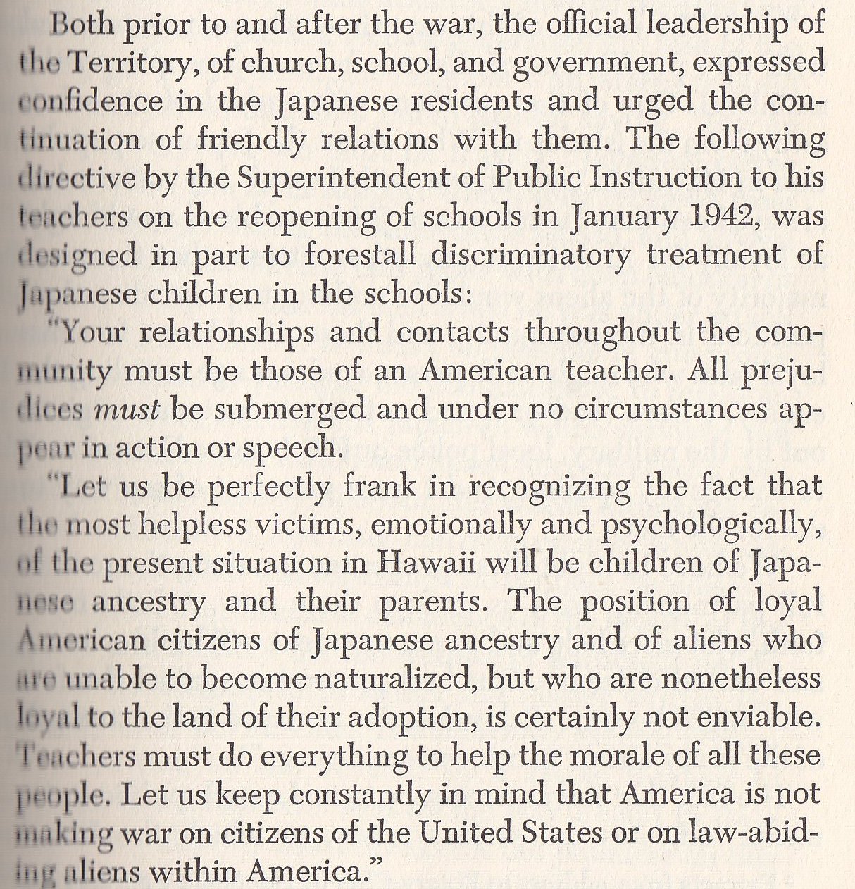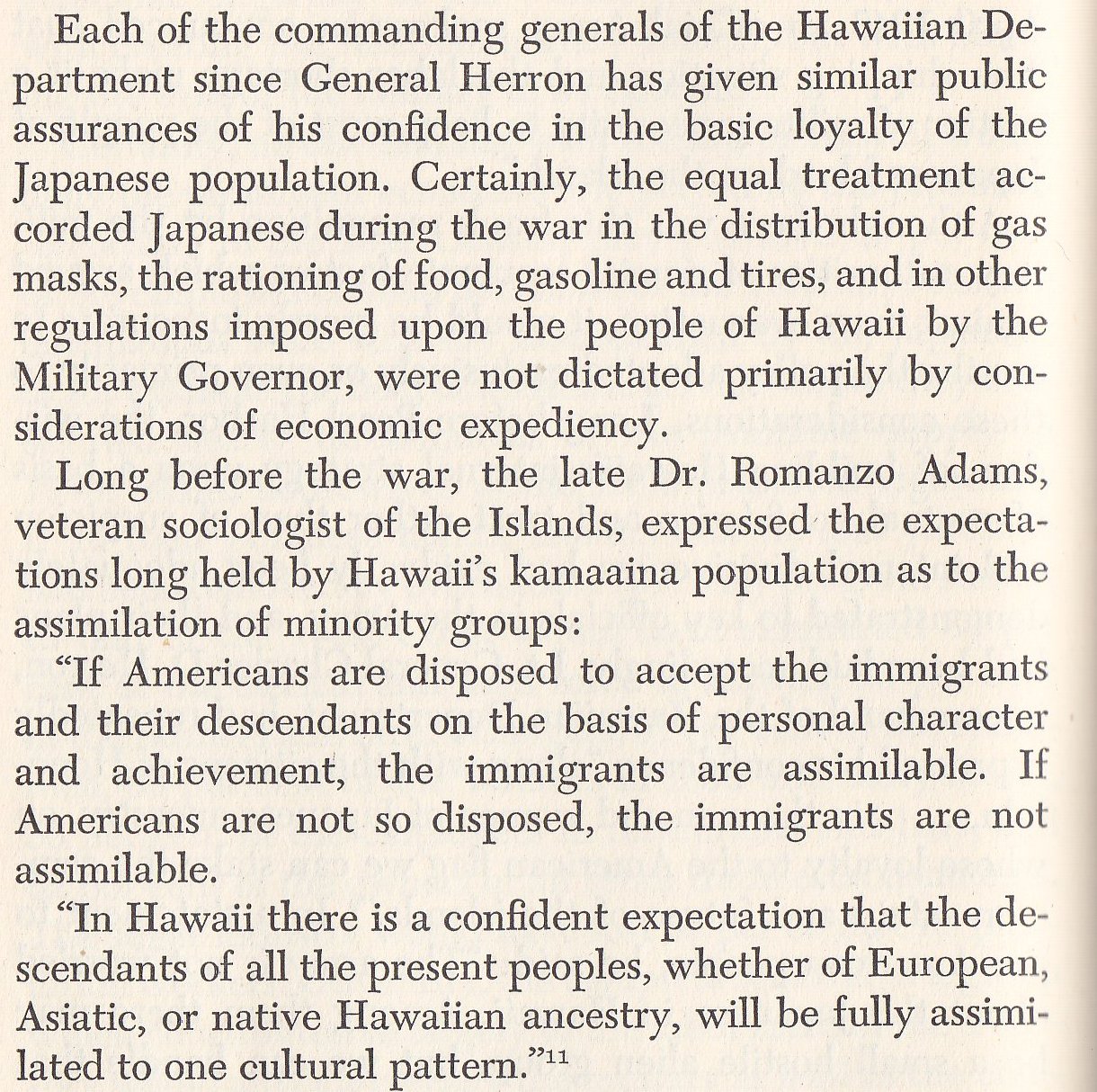 Keep in mind that the situation in Hawaii in relation to persons of Japanese ancestry was handled very, very differently from the situation on the West Coast of the U.S., and books like this help us to understand why.