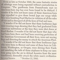The author also talks a little about how some of the Issei had difficulty accepting the fact that Japan had lost the war, a few of them making up all sorts of strange ideas to try and prove that Japan had really won the war.