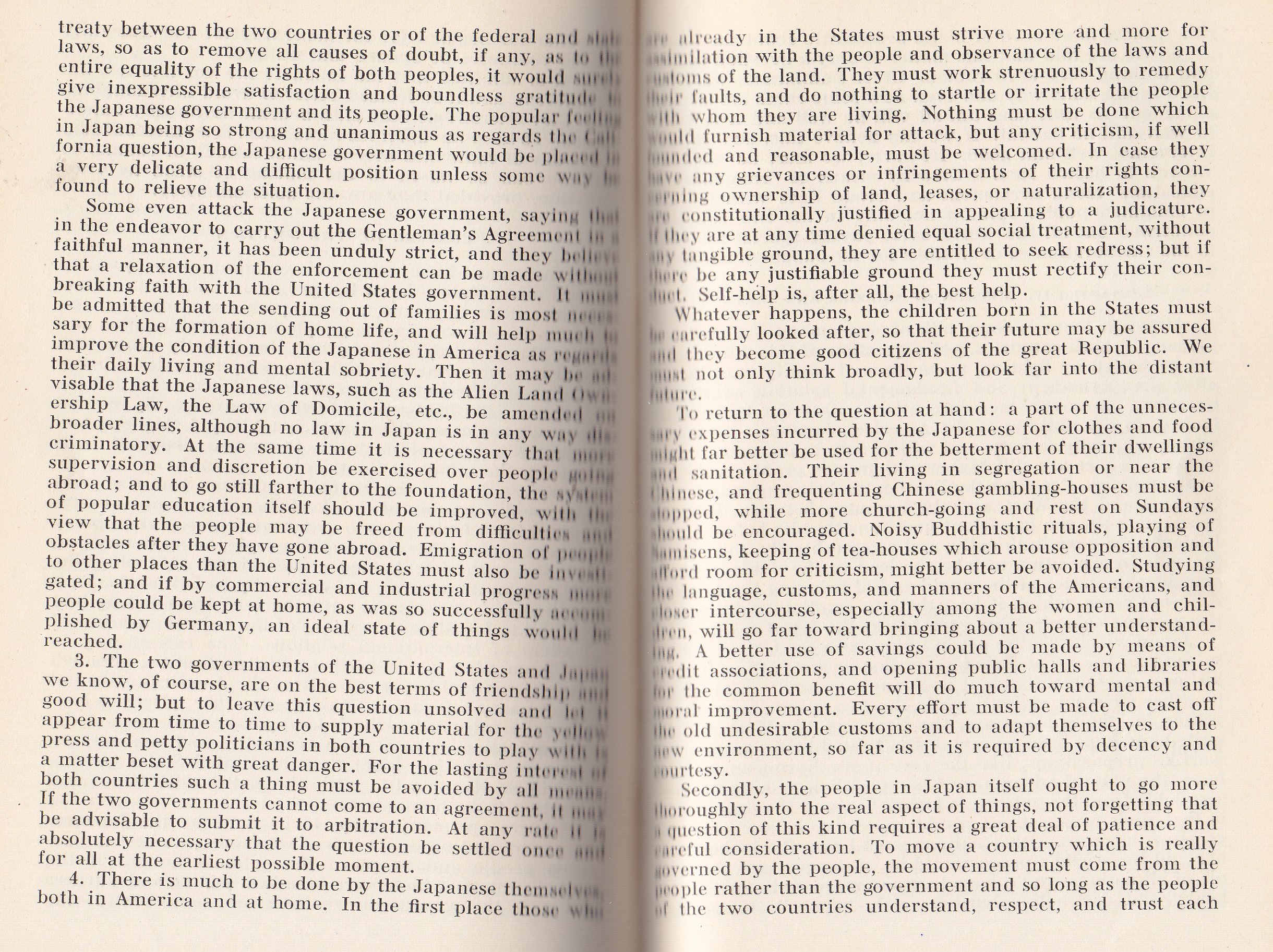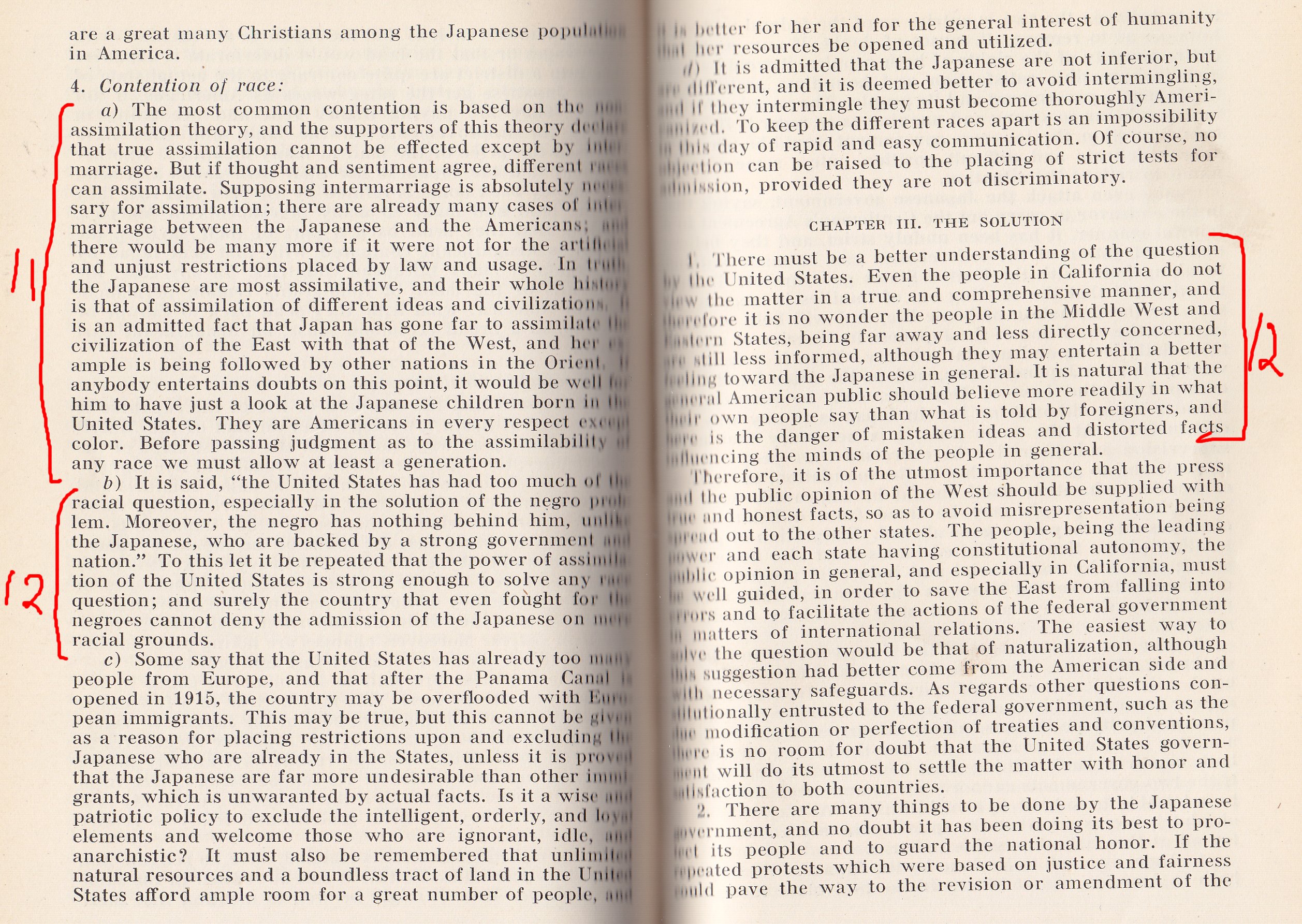 (11) Assimilation is discussed. (12) If blacks can be citizens, then why not Japanese? (12) They say there needs to be a better understanding of the entire situation, and there is no doubt that they were right. The problem is, though, that those who were strongly anti-Japanese were “true believers” and didn't care about obtaining an “understanding” of Japanese and their customs. These people simply hated the Japanese, and believed every rumor that arose.