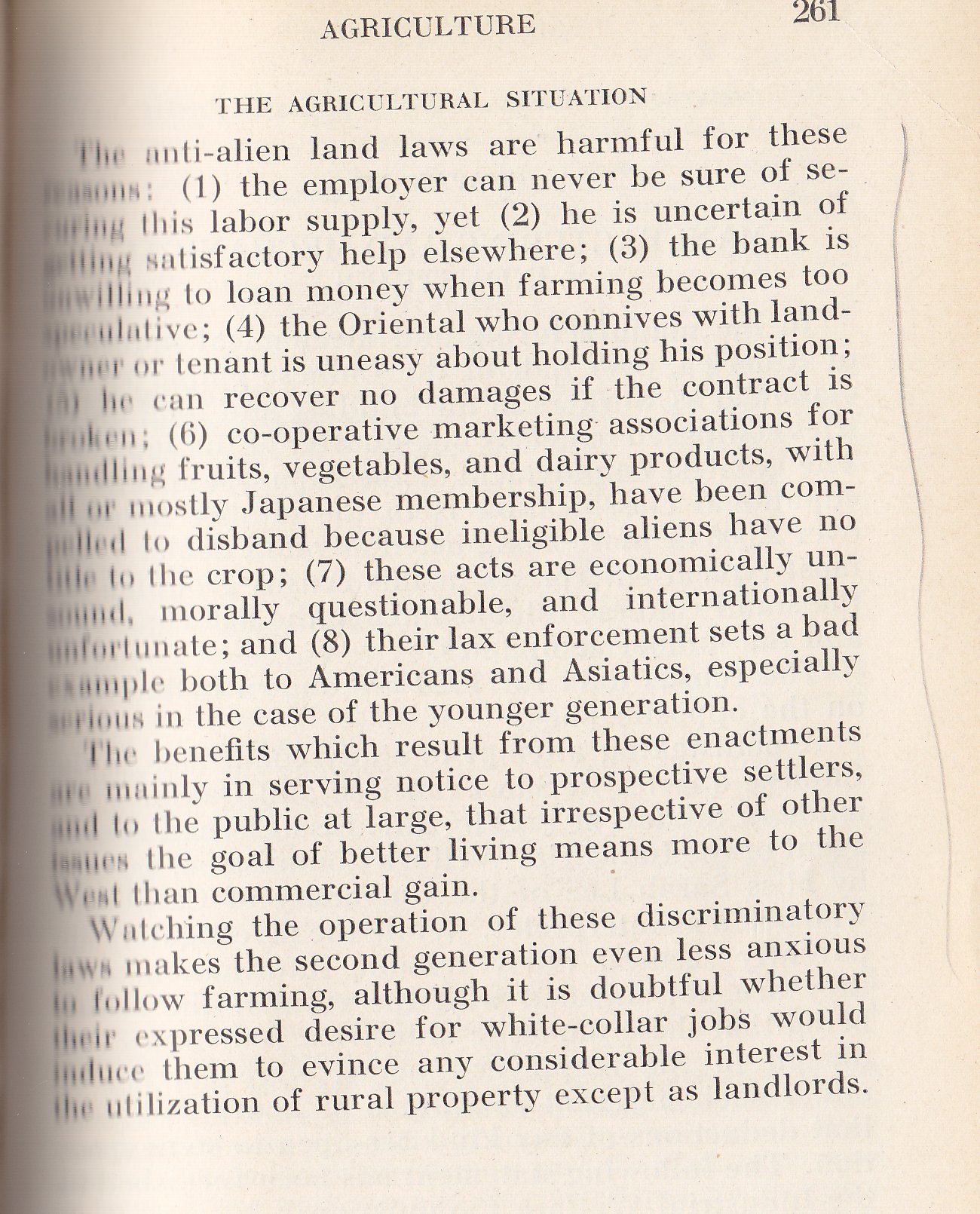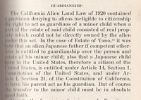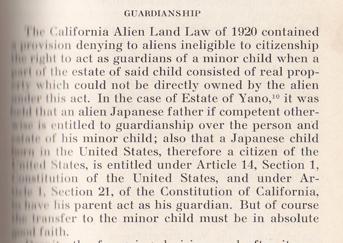 This is something he clears up that I had seen referred to elsewhere. Apparently, part of the law which was to stop aliens from buying land held that, if a child of an alien (a Nisei, for example) bought land (or it was arranged for land to be bought in his name), then that child would be removed from the household. One of the things some Japanese immigrants had done when the initial laws went into place was to allow their children to buy land (and, I assume, have it done in their name) since their children were actual citizens by virtue of being born here (most of them were born here, that is). This technique was to try to stop that totally.