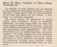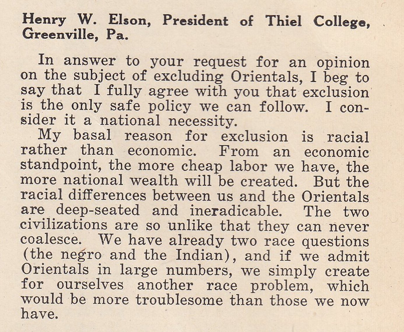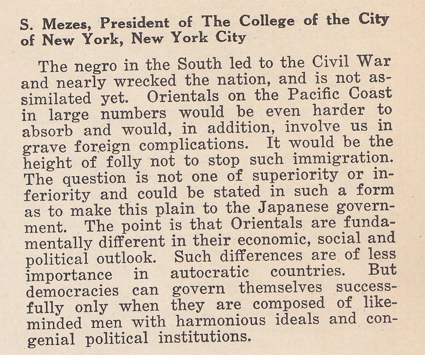 Another college president, this time comparing the black “problem” with the Oriental “problem.”