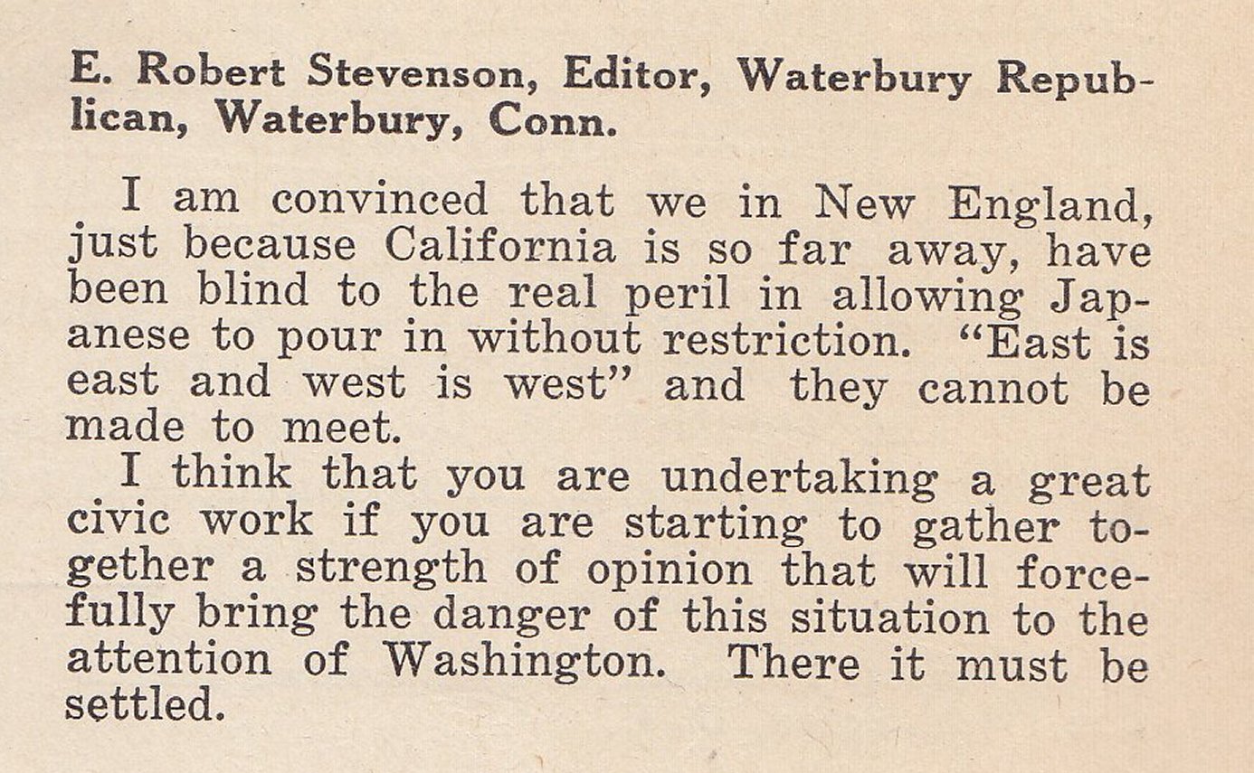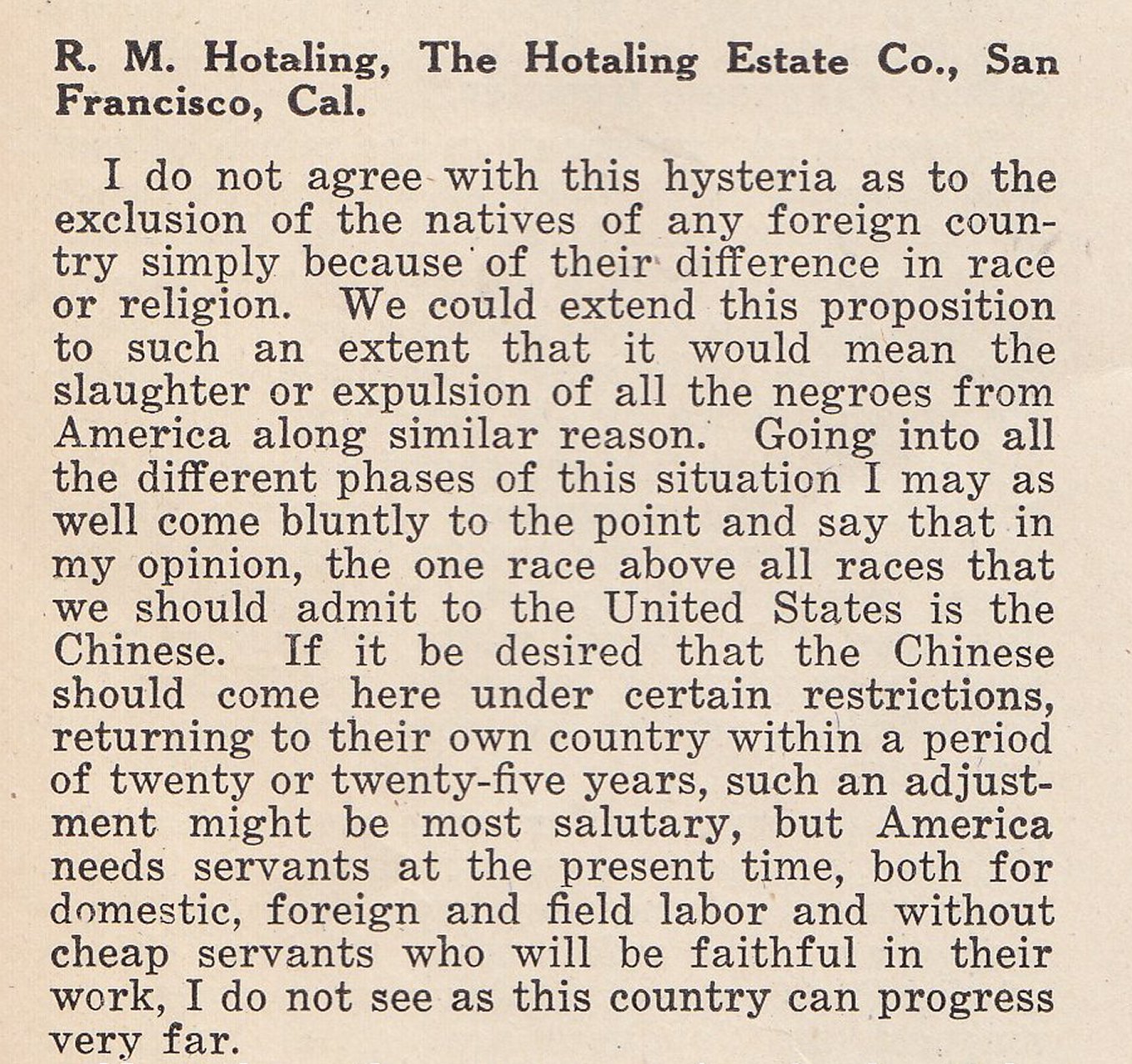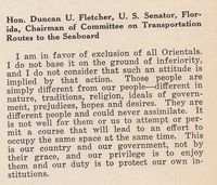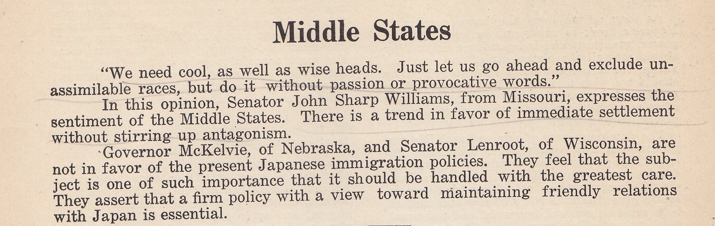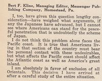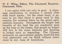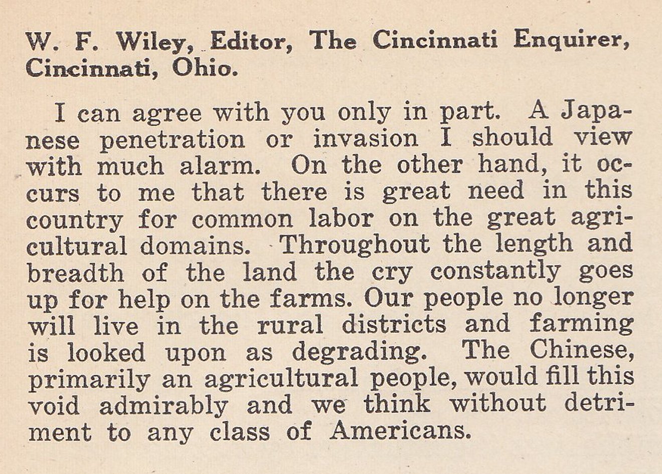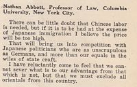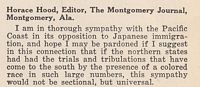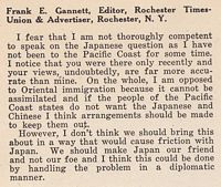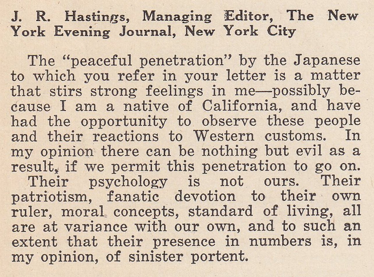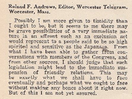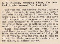 This person is hard to figure. He notes that keeping friendly relations is important, yet he does not state anything about his own personal opinion about the Japanese or their immigration.