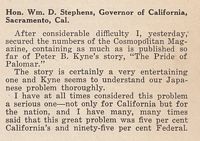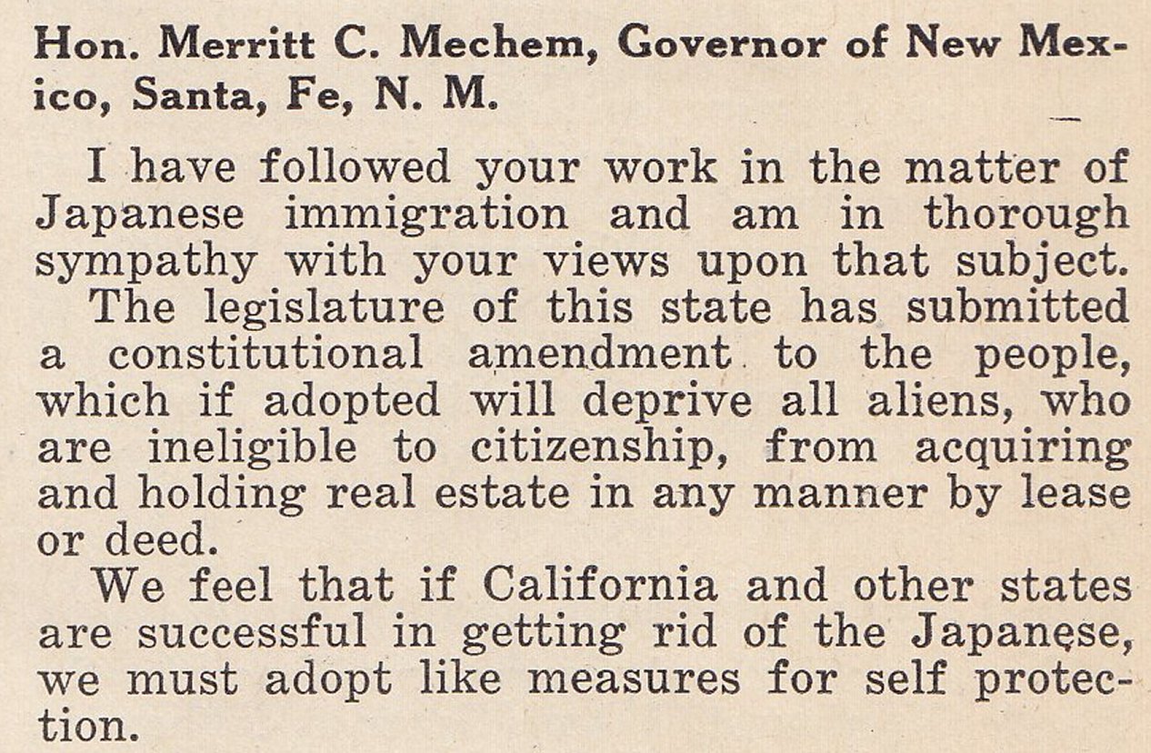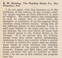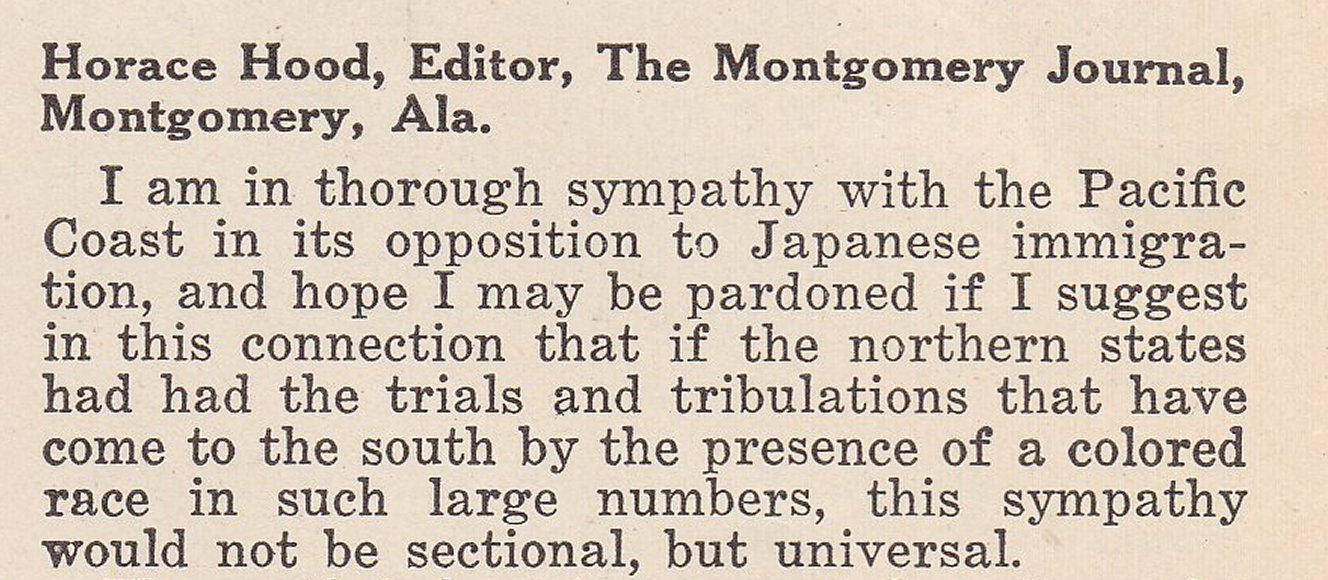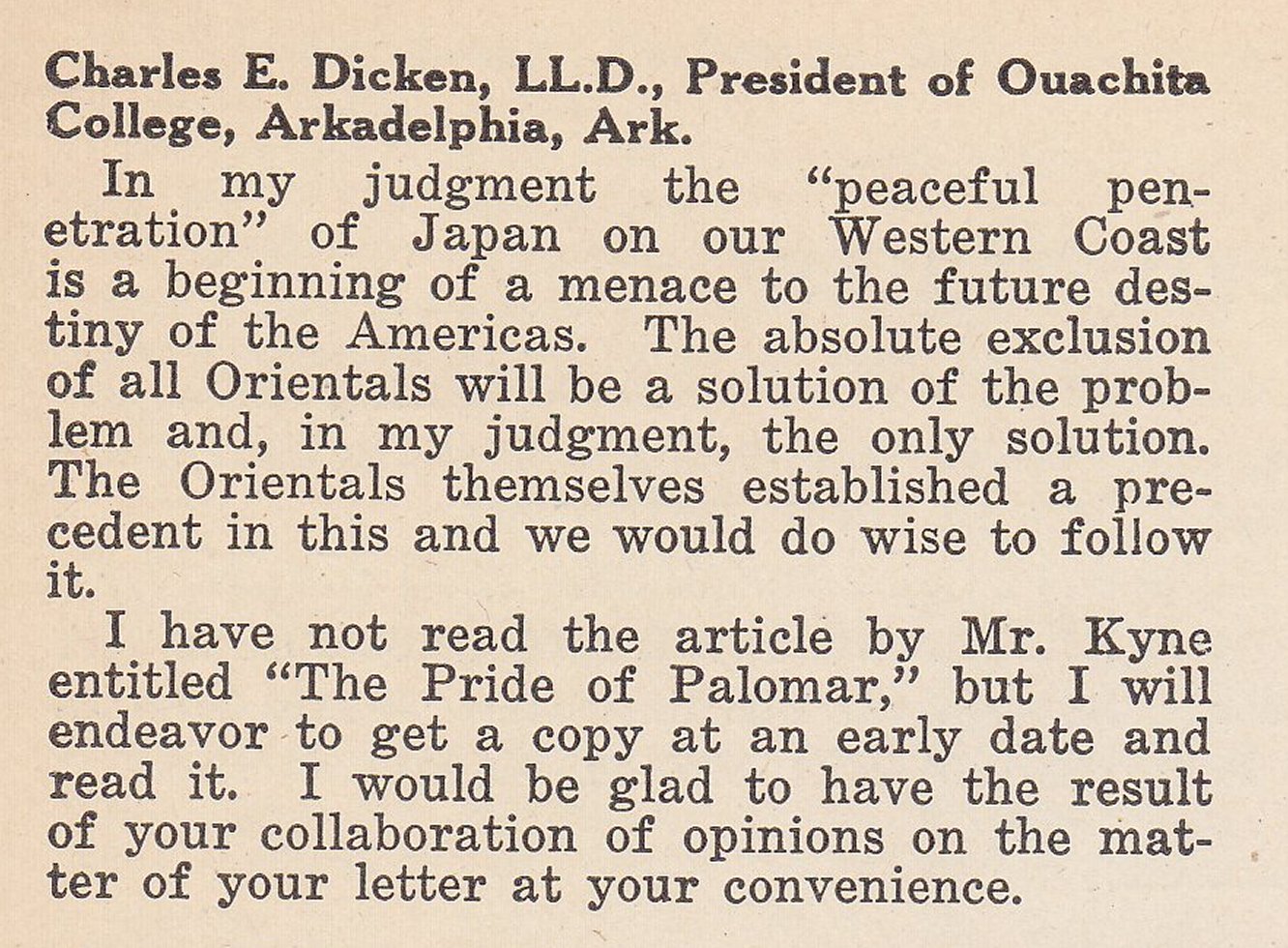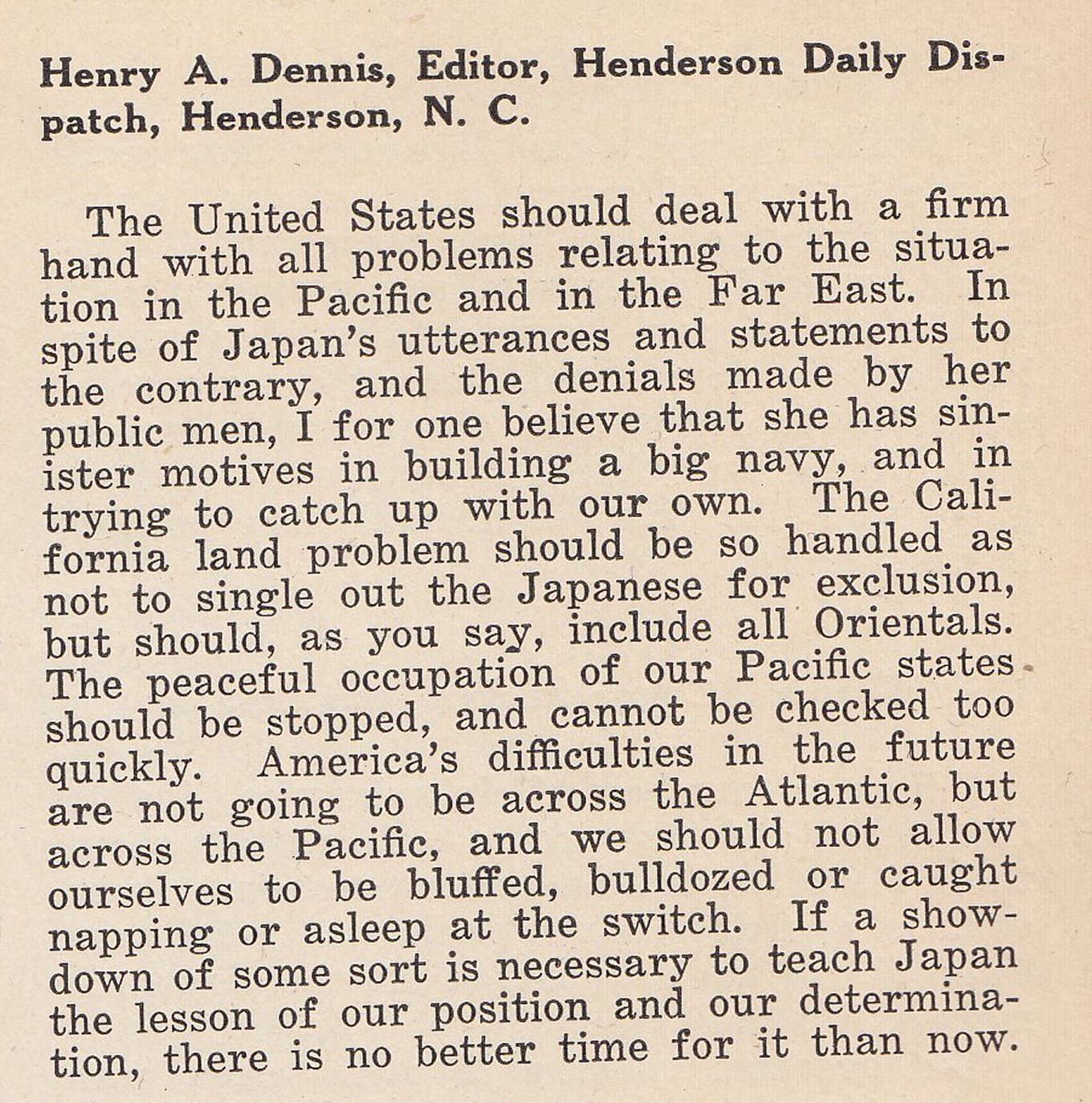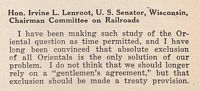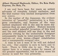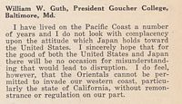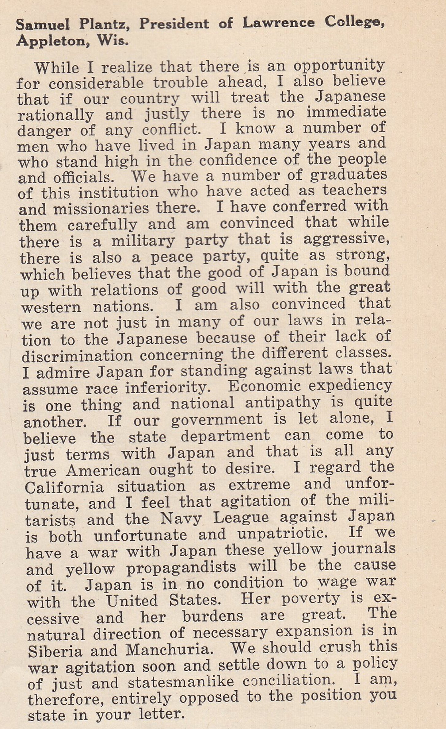 This person is hard to figure. He notes that keeping friendly relations is important, yet he does not state anything about his own personal opinion about the Japanese or their immigration.