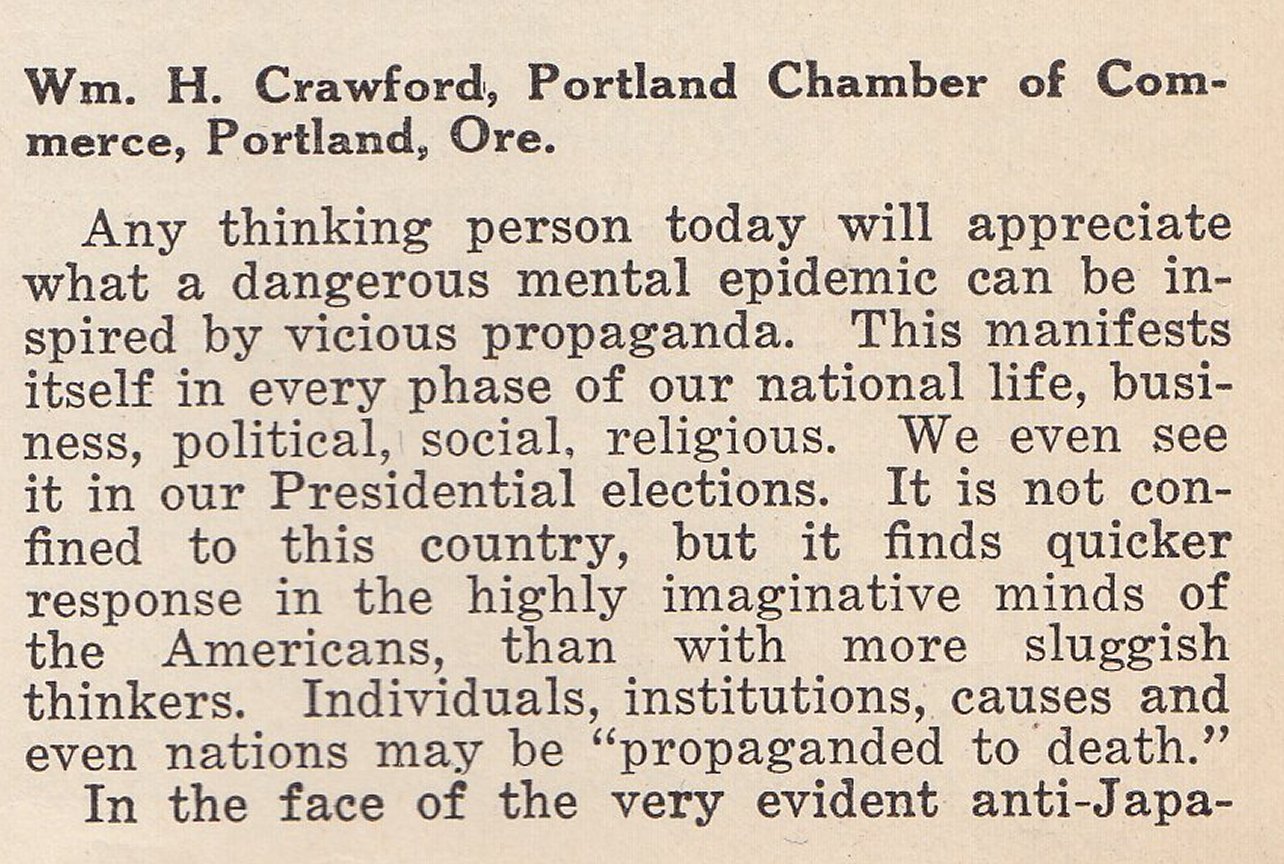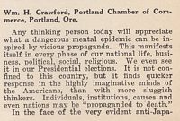 Notice that this person uses the term “infested” in relation to the Japanese, thus comparing them to insects. He also uses the term “infiltration,” as if the Japanese are infiltrating the country with one single common purpose.