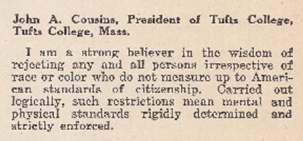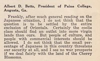 A college president is anti-Japanese and also doesn't think the two races should mix.