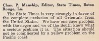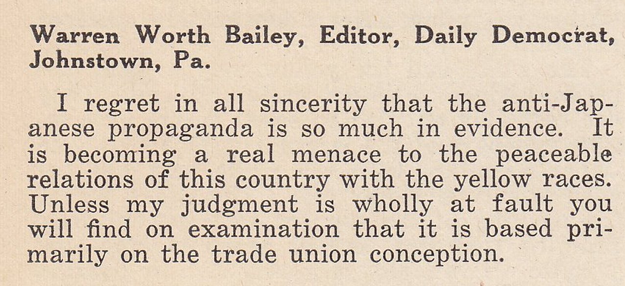 A editor of a Democratic newspaper does not care for the anti-Japanese movement.