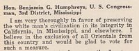 Now here is a more honest politician. He admits he's not really that close to the problem. He is, however, against total exclusion of the Orientals.
