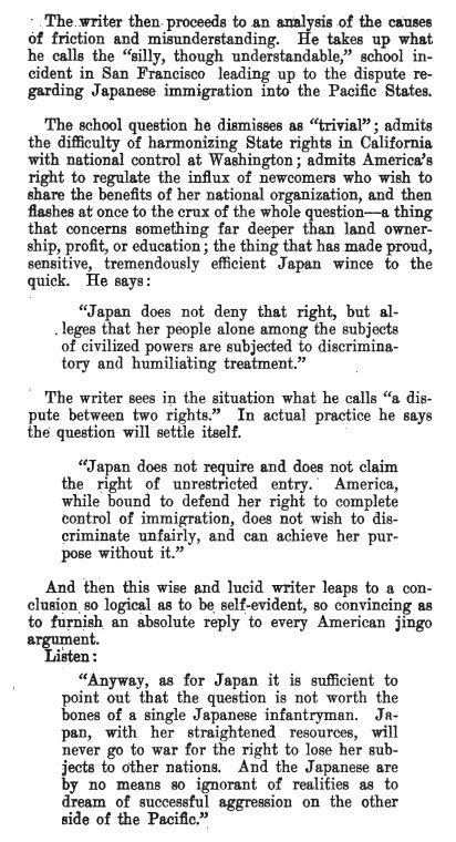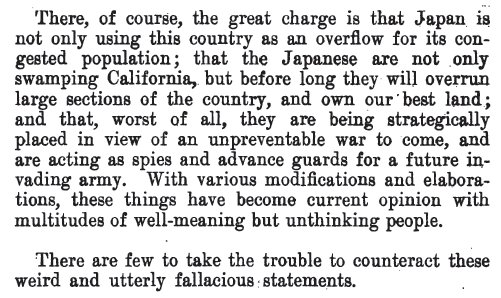 He discounts the rumors about there being too many Japanese on the west coast, and what their intentions really are.