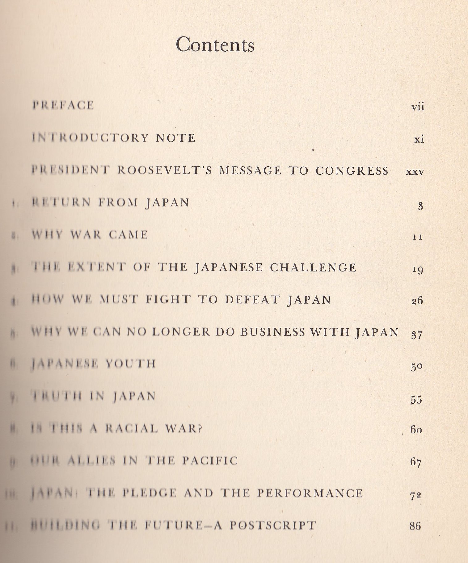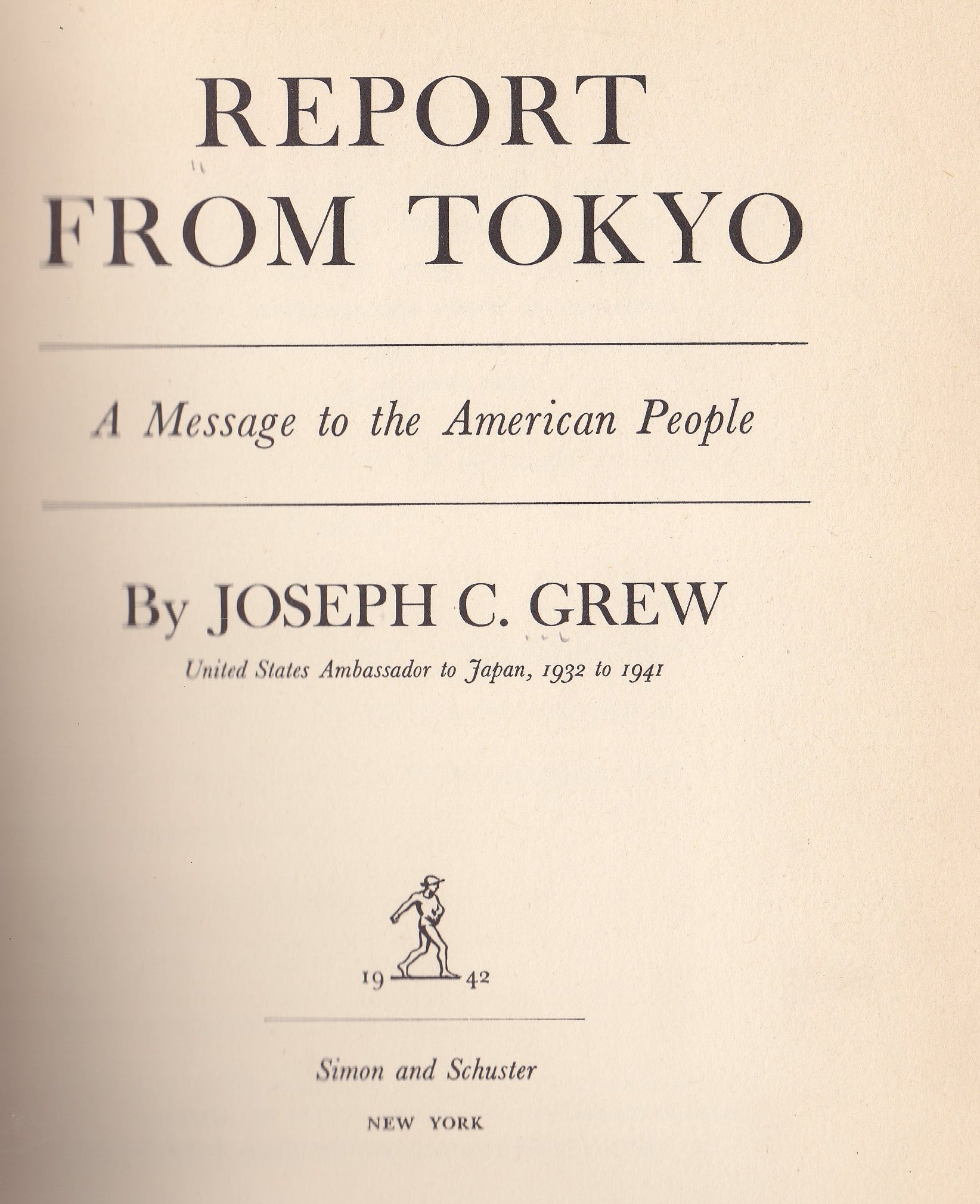Title page. Notice the man had been the U.S. ambassador to Japan, so it gives him good credibility. The book is dated 1942.
