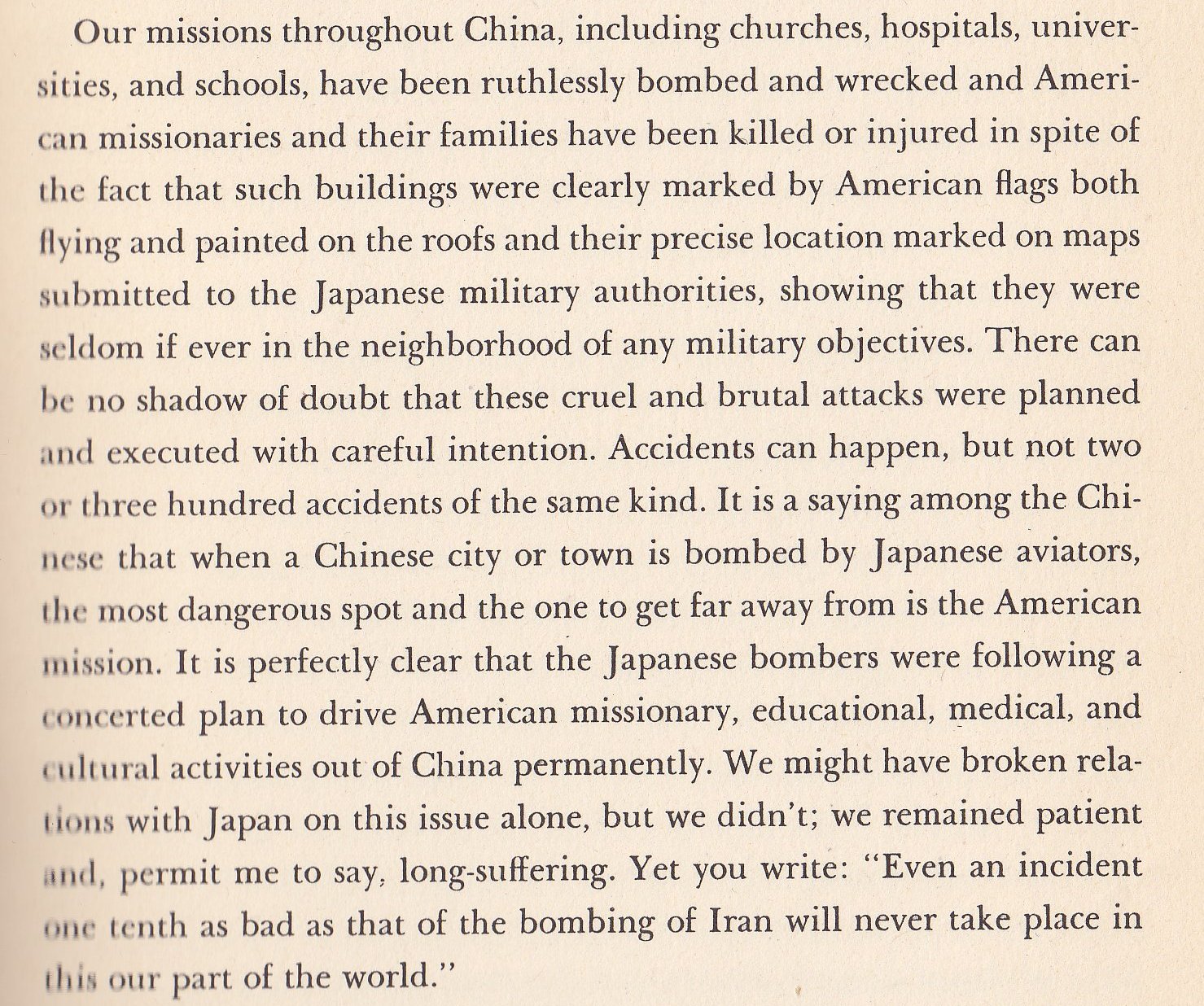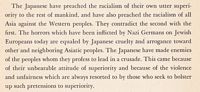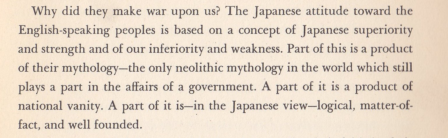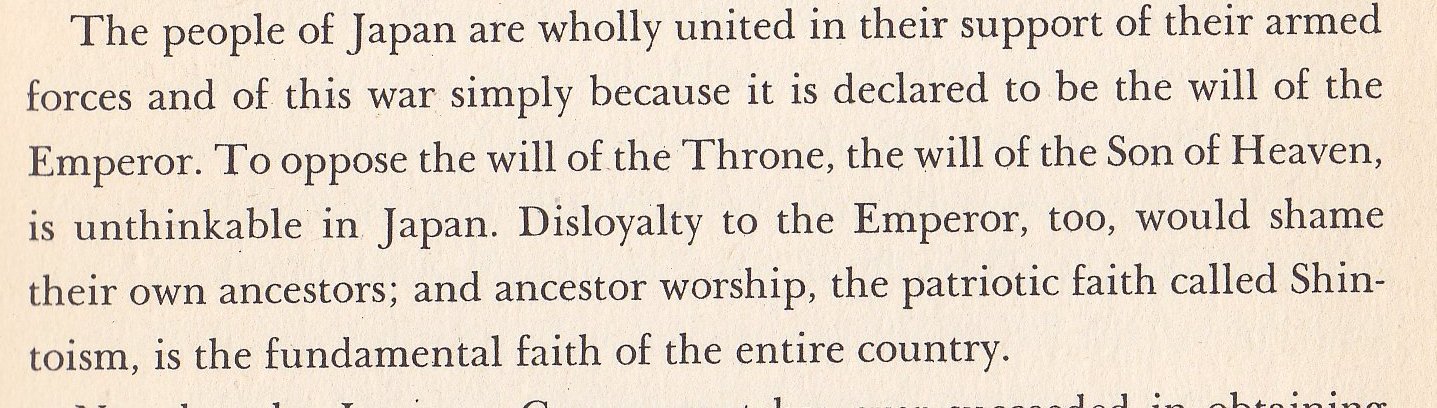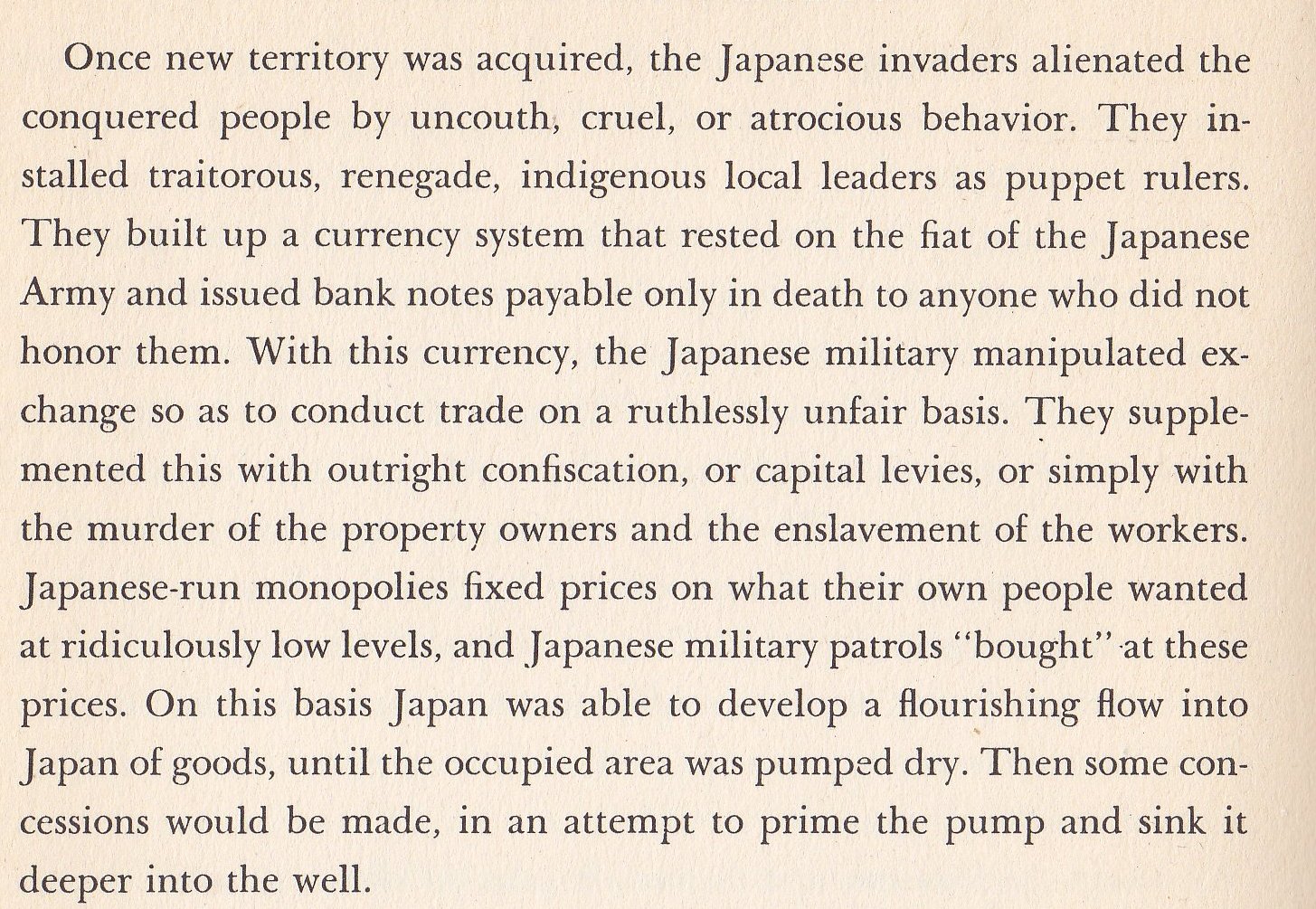 He writes about how the Japanese tortured Americans that were in Japan when the war began. He also refers to the Rape of Nanking.