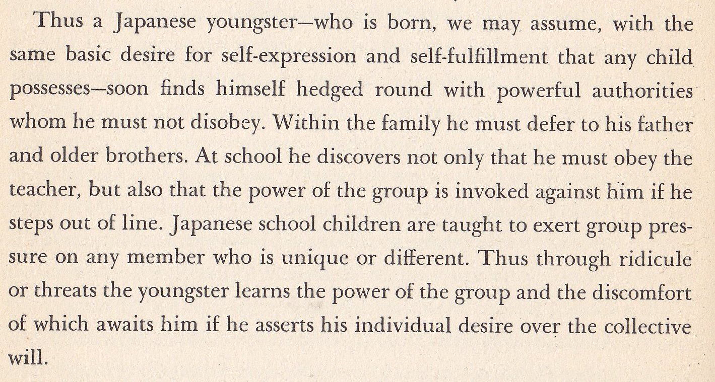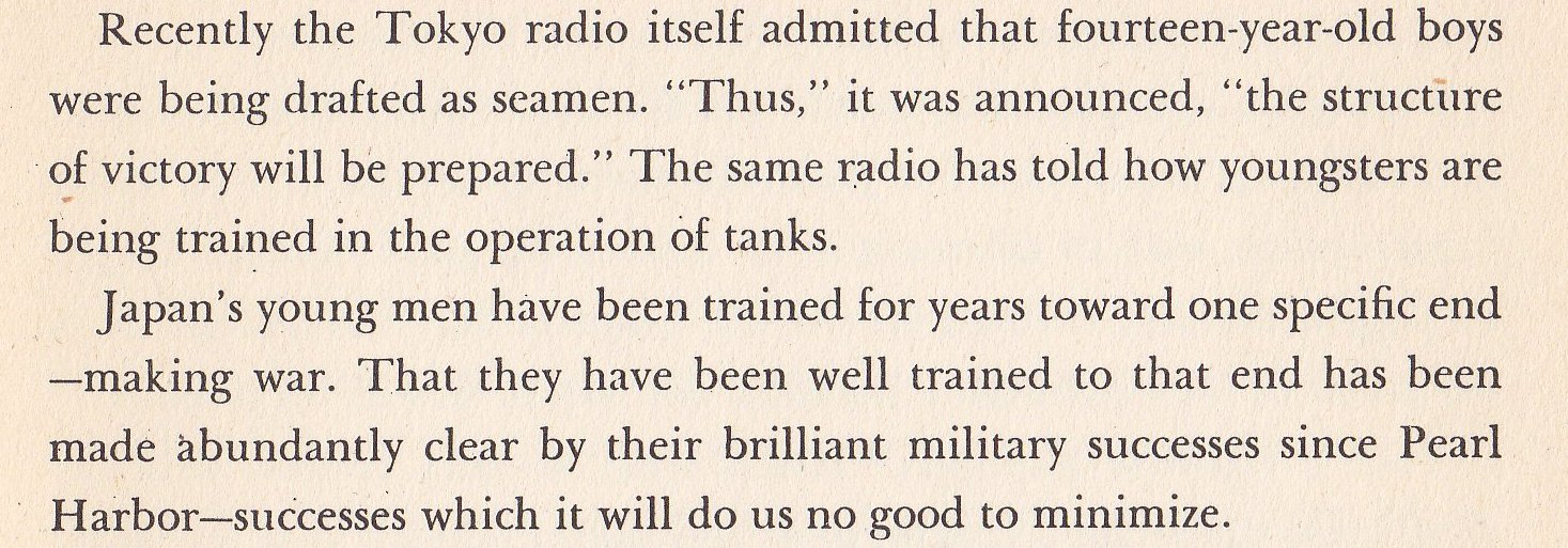In the following chapter, it talks about how the young people of Japan are molded into potential soldiers.