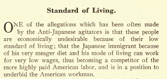 The 'standard of living' of the Asiatics is different so we can't have a lot of them immigrate?