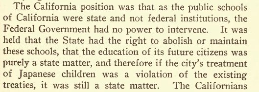 The chapter then discusses treaties between the two countries, and the problem with the San Francisco school board when they wanted all Japanese students segregated into a separate school from whites. Teddy Roosevelt was the person who forced the board to back down.