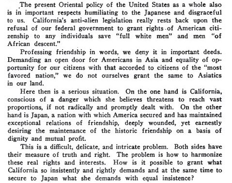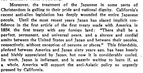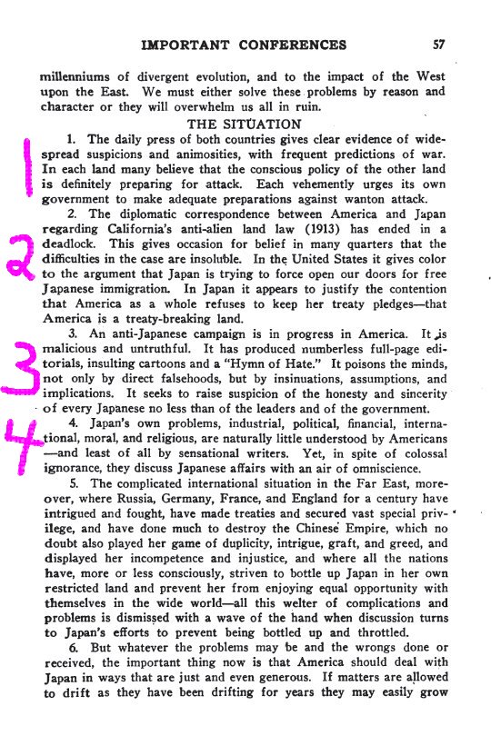 1: American view of Japan's actions in China causes problems in Japan. Notice he says 'Japan's legitimate and absolutely necessary expansion of trade and influence in China...' There is no problem with expanding trade with China, of course, but the idea of a legitimate and necessary expansion of Japan's influence in China doesn't seem to be reasonable.