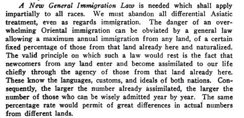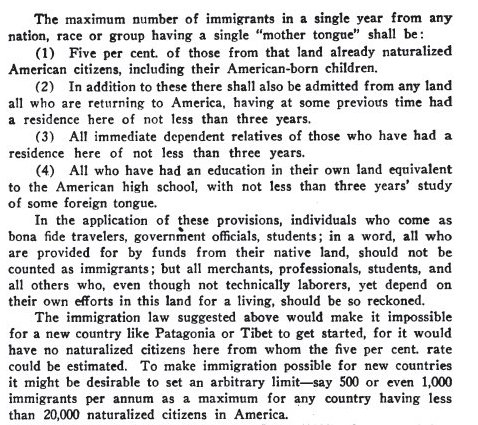 A new immigration law should be a quota based on the number of people of that country that are already here.