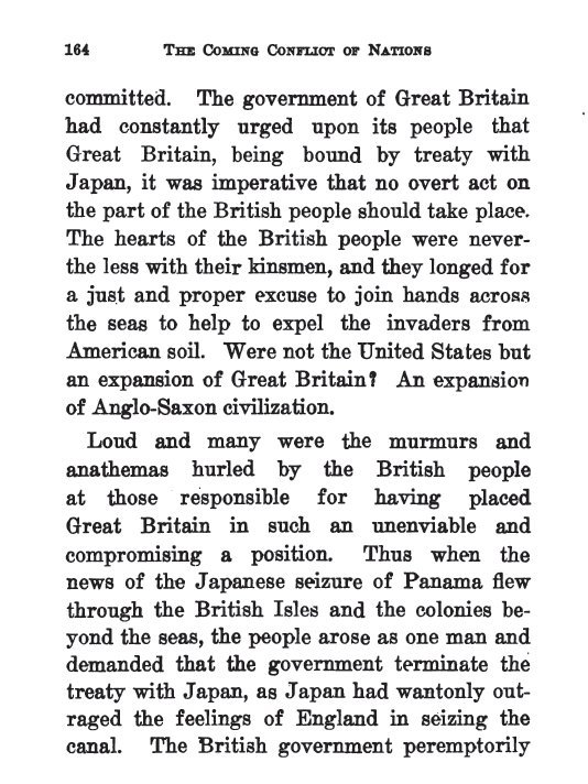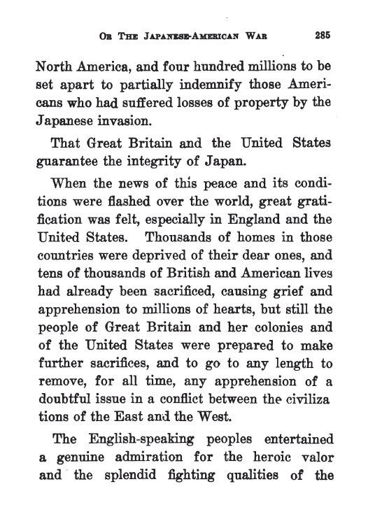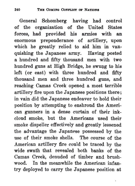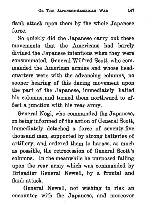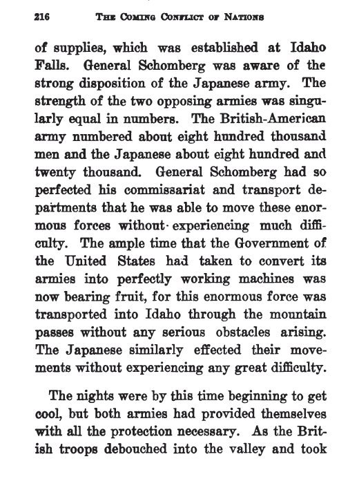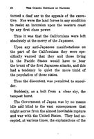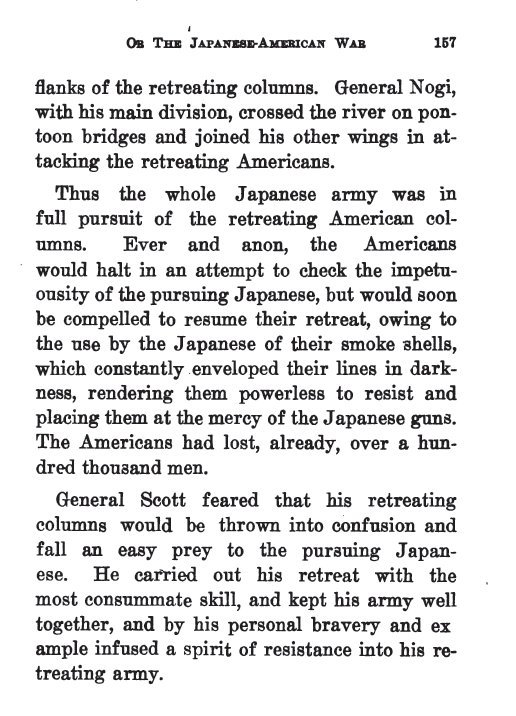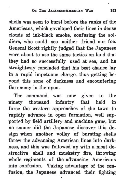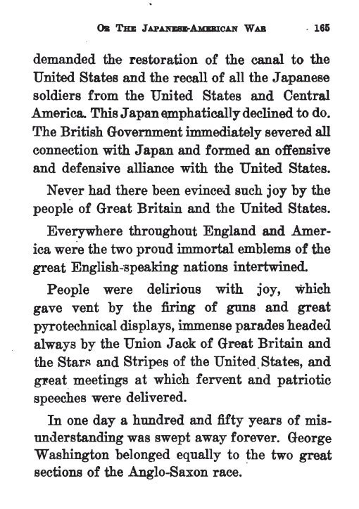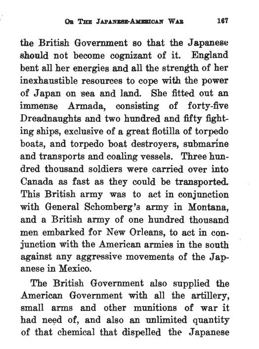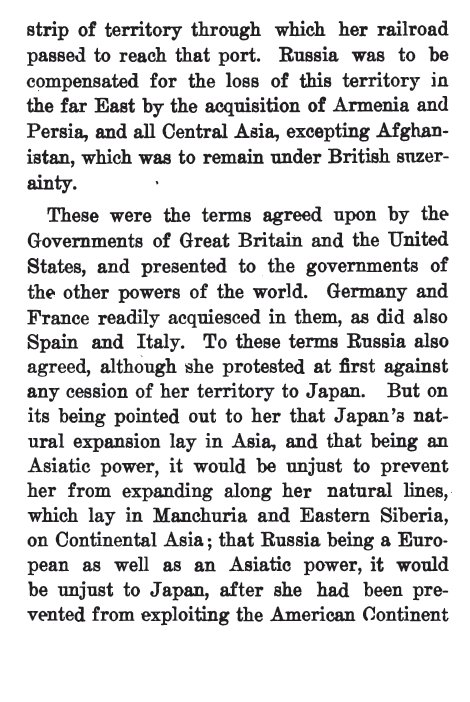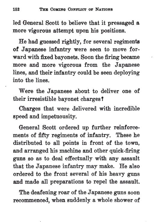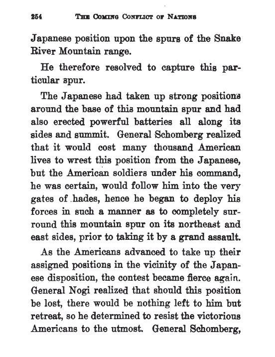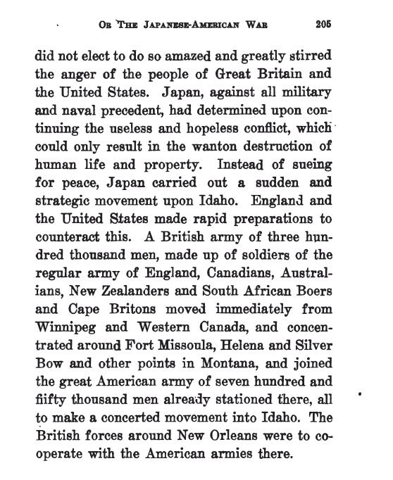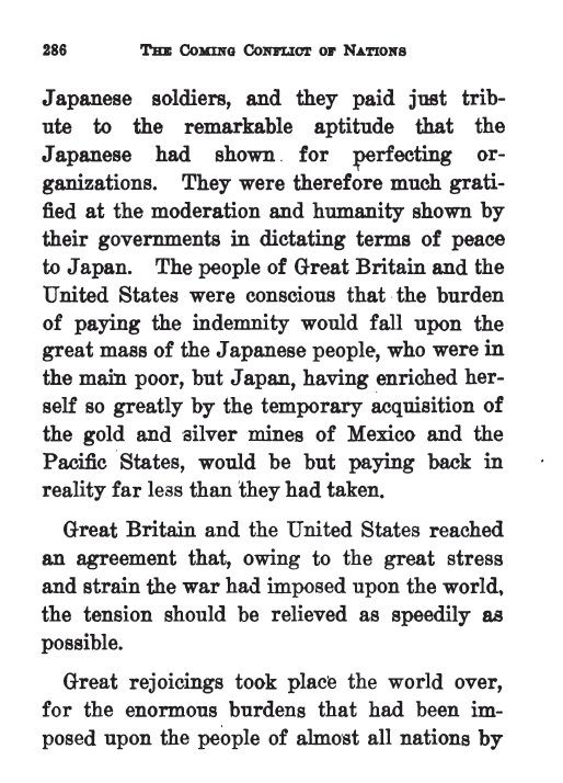 Similar to what really happened: California resented the Japanese immigrants. Separate schools for the Asiatics. Neither the navy nor the army of the U. S. is strong enough to defend the west coast properly. Japan had built up her military forces.