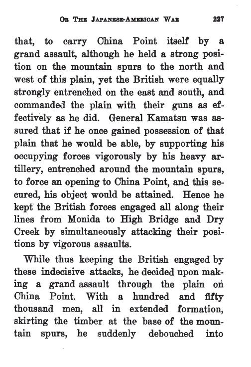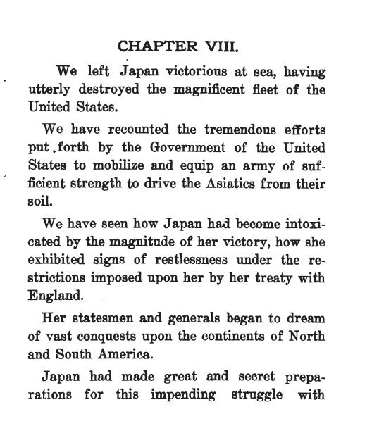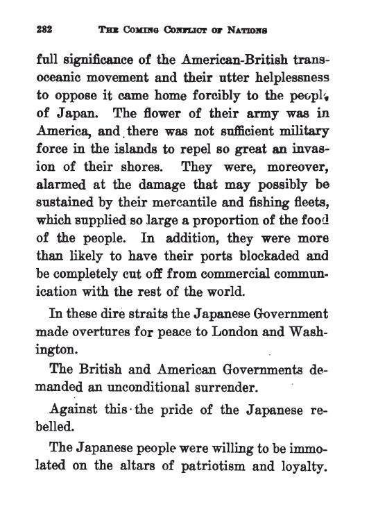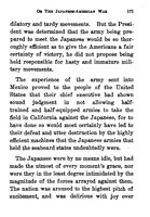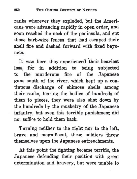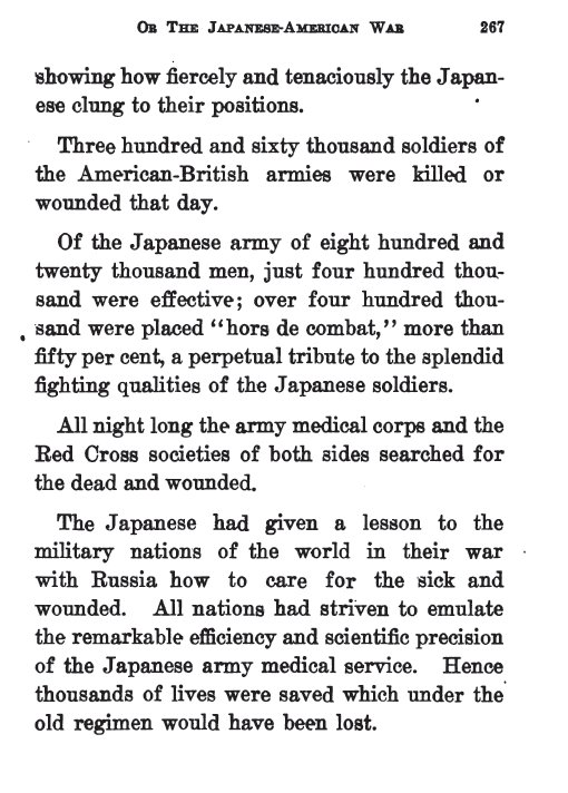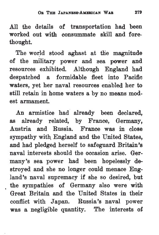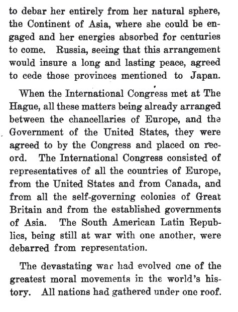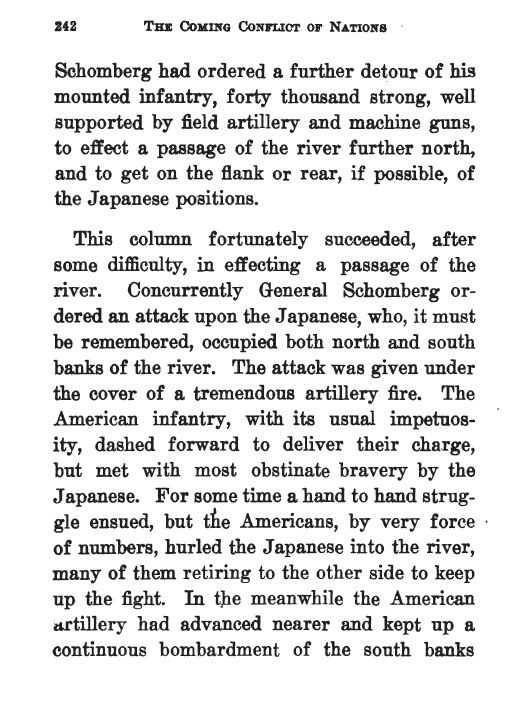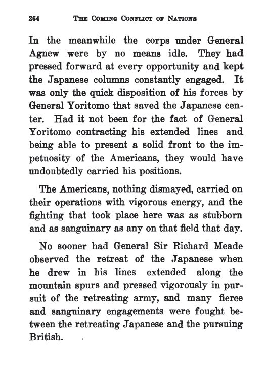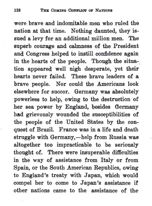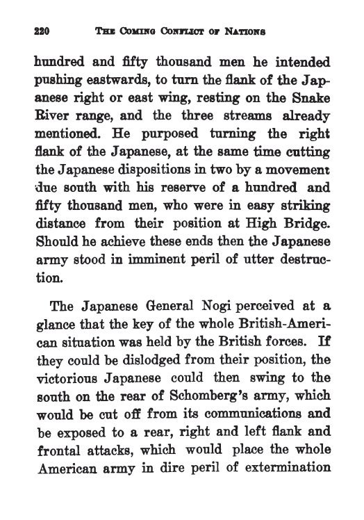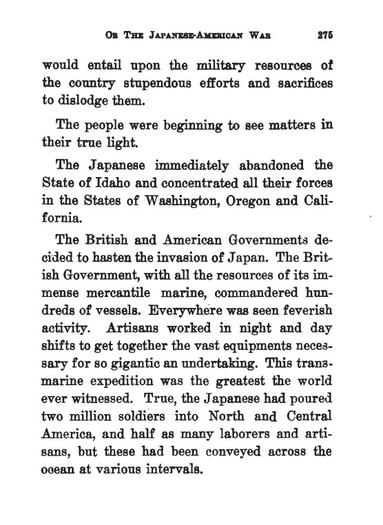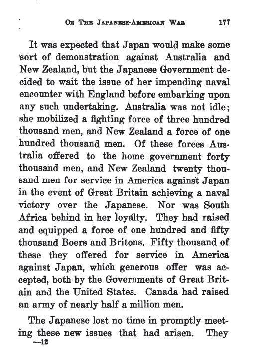 Similar to what really happened: California resented the Japanese immigrants. Separate schools for the Asiatics. Neither the navy nor the army of the U. S. is strong enough to defend the west coast properly. Japan had built up her military forces.