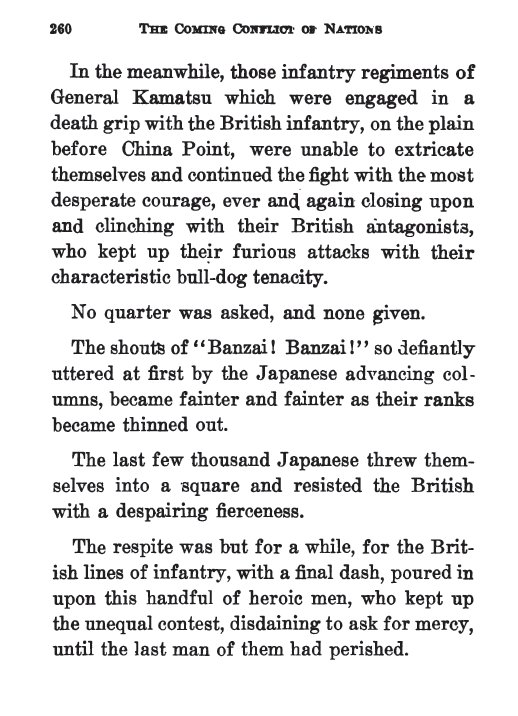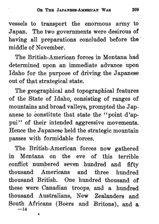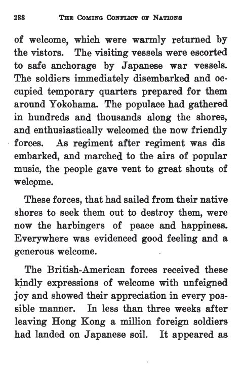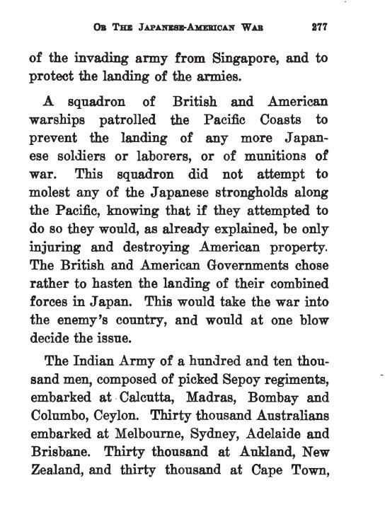 Japan takes over Hawaii, again by having disguised soldiers there. (Although the book refers to fierce fighting that the Japanese encountered, it doesn't way what the large population of Japanese living there did, what side they fought on.)