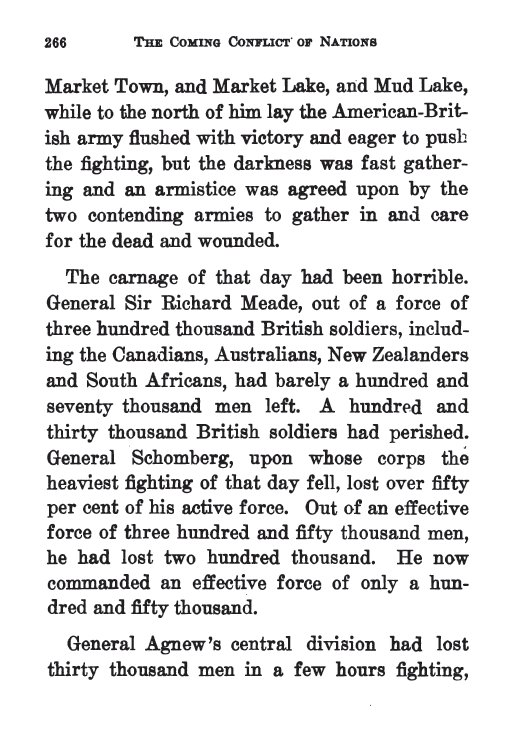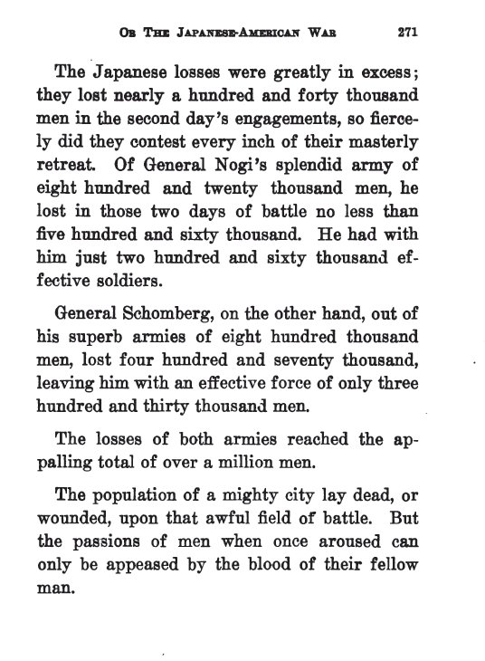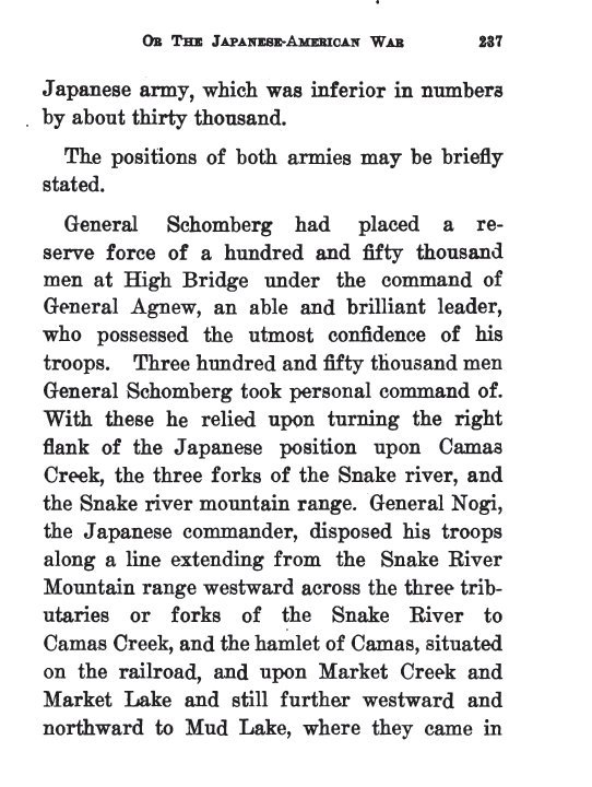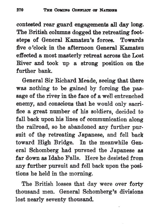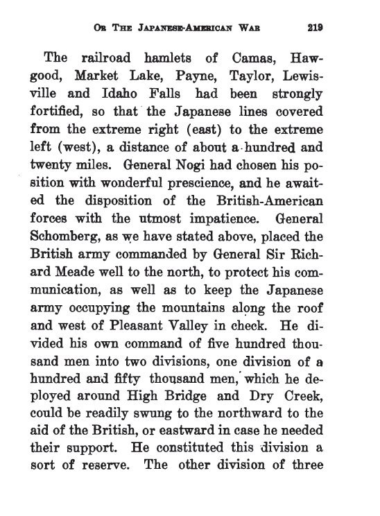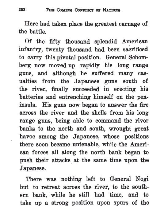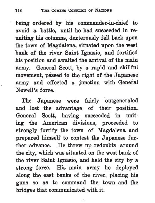Japan ships over 750,000 more soldiers. Mexico makes a treaty of friendship with Japan. U.S. forces move to Mexico to attack the Japanese there, while the Japanese army prepares to attack U.S. forces in Montana. The U.S. forces make a stand at Magdalena. The Americans are forces there are defeated.