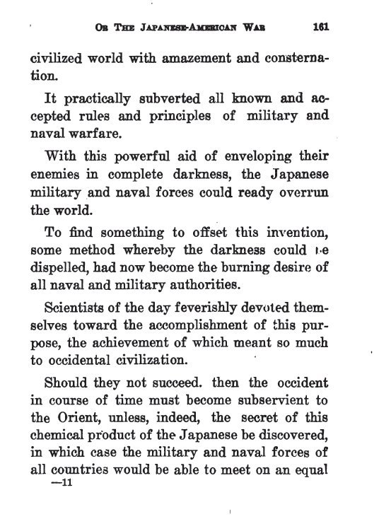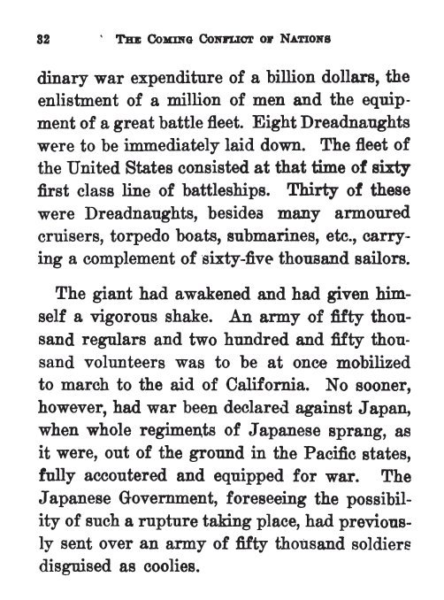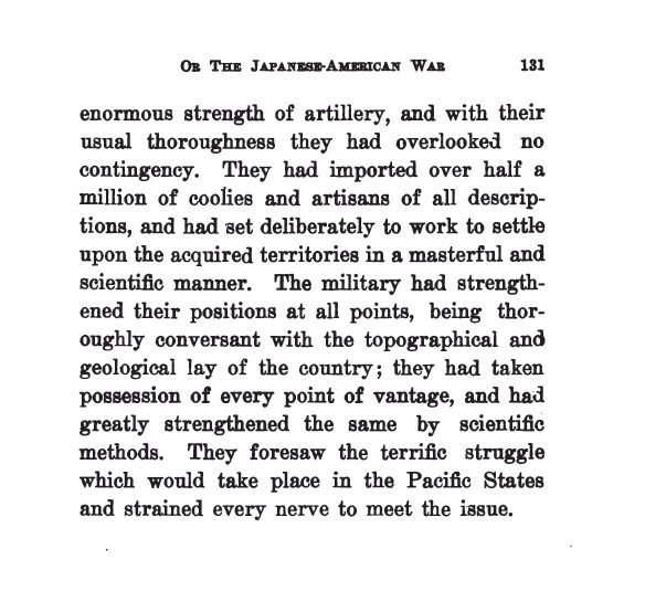 The Japanese had sent an army to the U.S. disguised as coolies. (I think the author does this to emphasize the 'sneaky' nature of the Japanese which many people believed in at the time.)