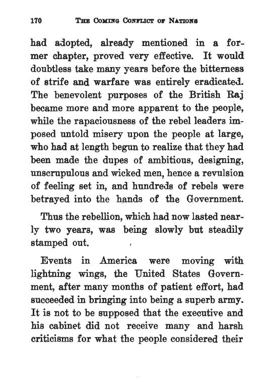 The Japanese bring laborers to the U.S. to raise crops and do other things. India tries to rebel against England but fails, even with Japanese helping them.
