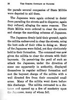 Different from what happened: The militia is called out to stop the parade, and this results in bloodshed with the militia using bayonets and the Japanese using their guns. Many of the militia are killed by the Japanese.