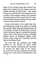 Different from what really happened: What's very interesting is that in this fantastic battle between two huge ground armies, planes play no role whatsoever. There is no bombing, no strafing, not even any use of planes as devices to help determine enemy movements. Also, the battles in WWII took place on islands and there wasn't any mass amount of land to have such huge battles on, although, if Japan itself had been invaded as was planned, then such giant battles might have come about but, again, planes would have played a major role in any such battles.